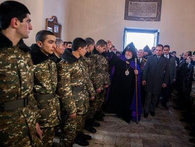 Հայոց բանակի սիրելի փառապանծ զորավարներ ու զինվորներ, դուք քաջ գիտեք, որ բանակն ուժեղ է ոչ միայն զենք ու զինատեսակներով, այլ նաև` ոգով ու պատրաստուածությամբ: Ձեր սերը հայրենիքի հանդեպ, ծառայության մեջ ձեր նախանձախնդրությունը, միմյանց հանդեպ ազնիվ վերաբերմունքն ու հոգածությունը ձեր հոգին զորացնող հավատքն ու հույսը նույնպես ձեր զենքերն են: Մաղթում ենք, որ մեր բանակը միշտ լինի հայրենասիրության դարբնոց, աննկուն պաշտպանը մեր ժողովրդի արդար իրավունքների ու ամեն առաքինության օրինակ, և մեր կյանքում միշտ ամուր լինեն հույսն ու քաջալերությունը և հավատքը աներկբա, որ «Տերն իր ժողովրդին զորություն պիտի տա և իր ժողովրդին պիտի օրհնի խաղաղություն պարգևելով»: Աղոթք ենք վերառաքում, որ Աստուծո Սուրբ Աջը հովանի և պահապան լինի ձեզ և պարգևի ապահով ծառայություն հայրենյաց խաղաղ եզերքներում: Թող ձեր հավատքը` որպես վահան ամրության, ձեզ պաշտպանի փորձություններից ու նեղություններից և Աստուծո շնորհները առատացնի ձեր կյանքում: