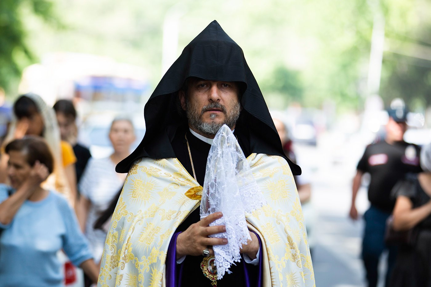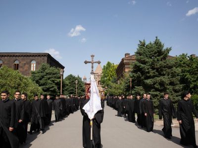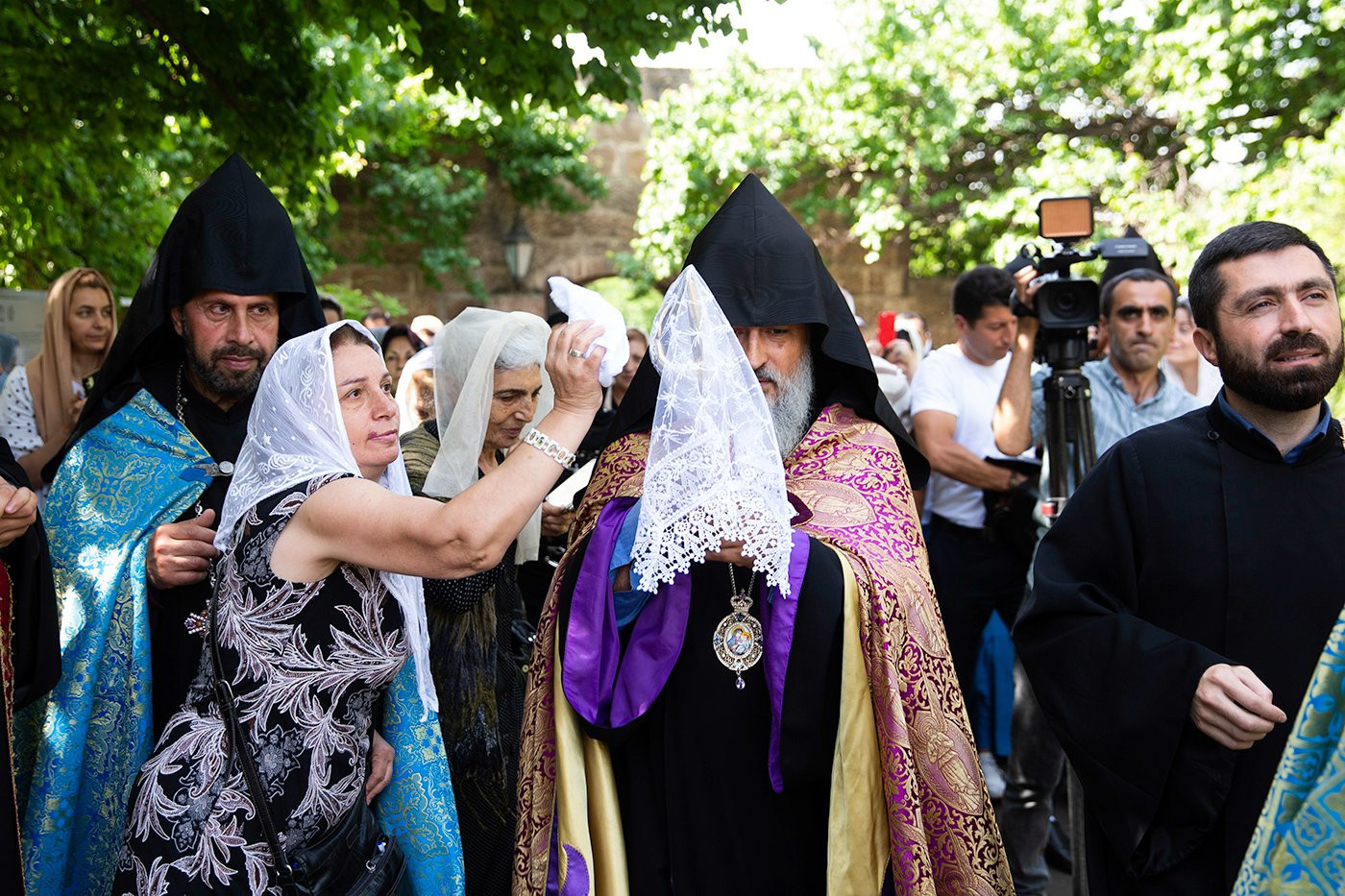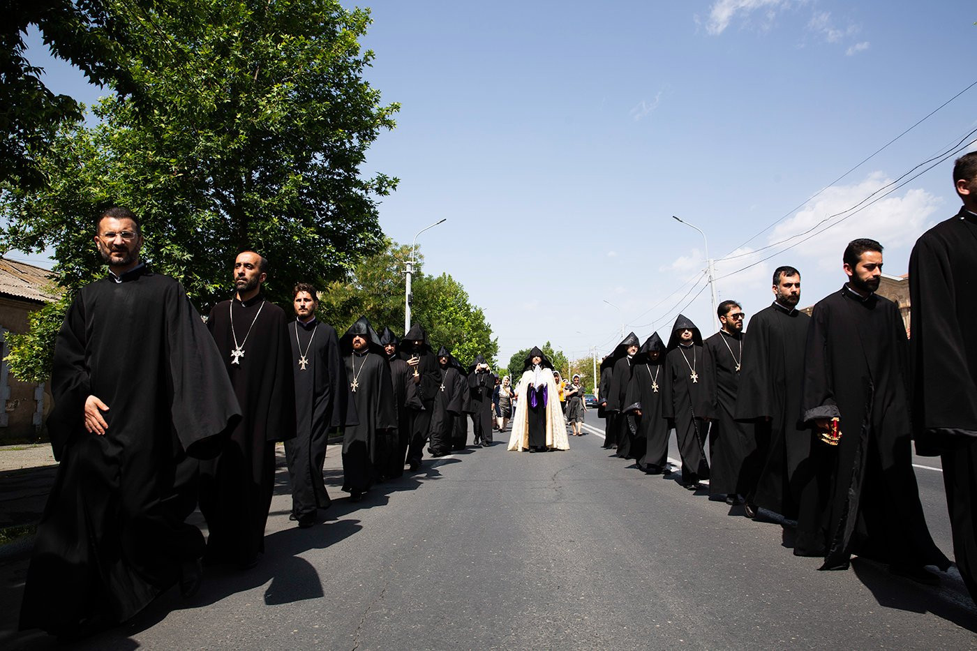 Սուրբ Հռիփսիմե վանքի առջև թափորը դիմավորեցին վանքի հոգևոր սպասավորները և տարբեր վայրերից ժամանած բազում ուխտավորներ` Մայր Աթոռ Սուրբ Էջմիածնի Վանորեից տեսուչ Գերաշնորհ Տ. Արտակ եպիսկոպոս Տիգրանյանի գլխավորությամբ: