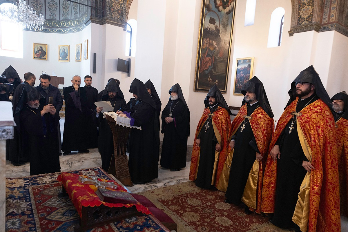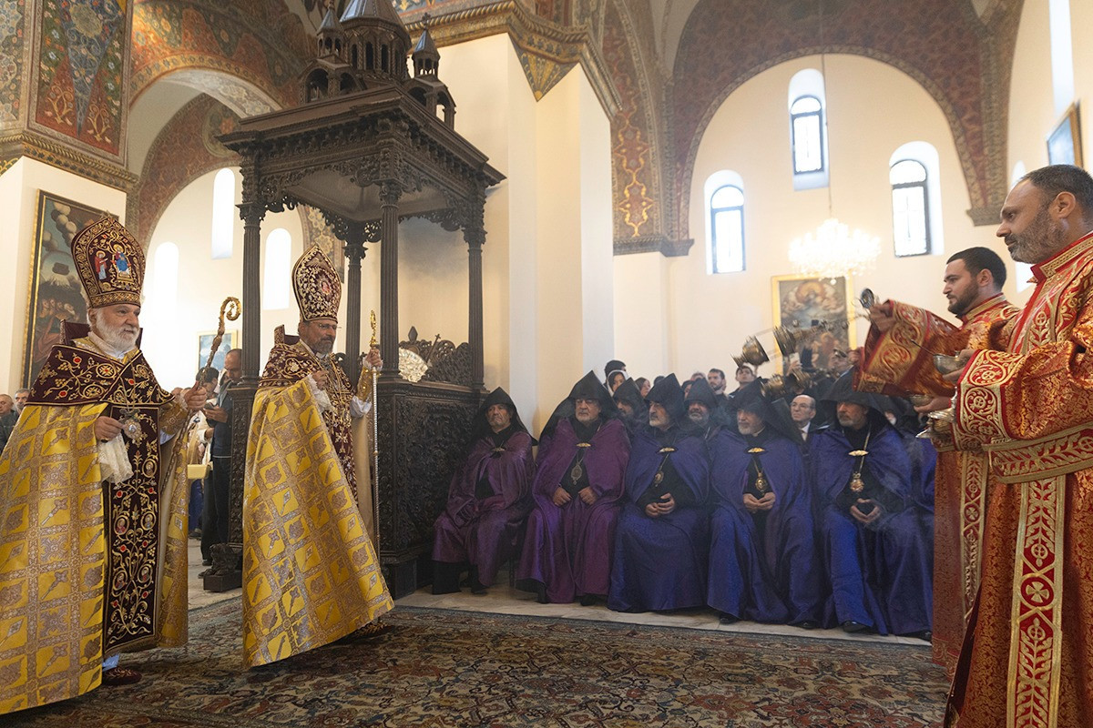 Վեհափառ Հայրապետը փառք և գոհություն մատուցեց Ամենակարող Աստծուն, որ Միածնաէջ Մայր Տաճարի վերաօծման և Սրբալույս Մյուռոնի օրհնության հոգենորոգ արարողություններից հետո բարեպատեհ առիթն ընձեռվեց եպիսկոպոսաց դասը համալրելու նորաօծ Սրբազաններով, ովքեր տարիների ծառայության գովելի վաստակ ունեն ազգային-եկեղեցական անդաստանում։