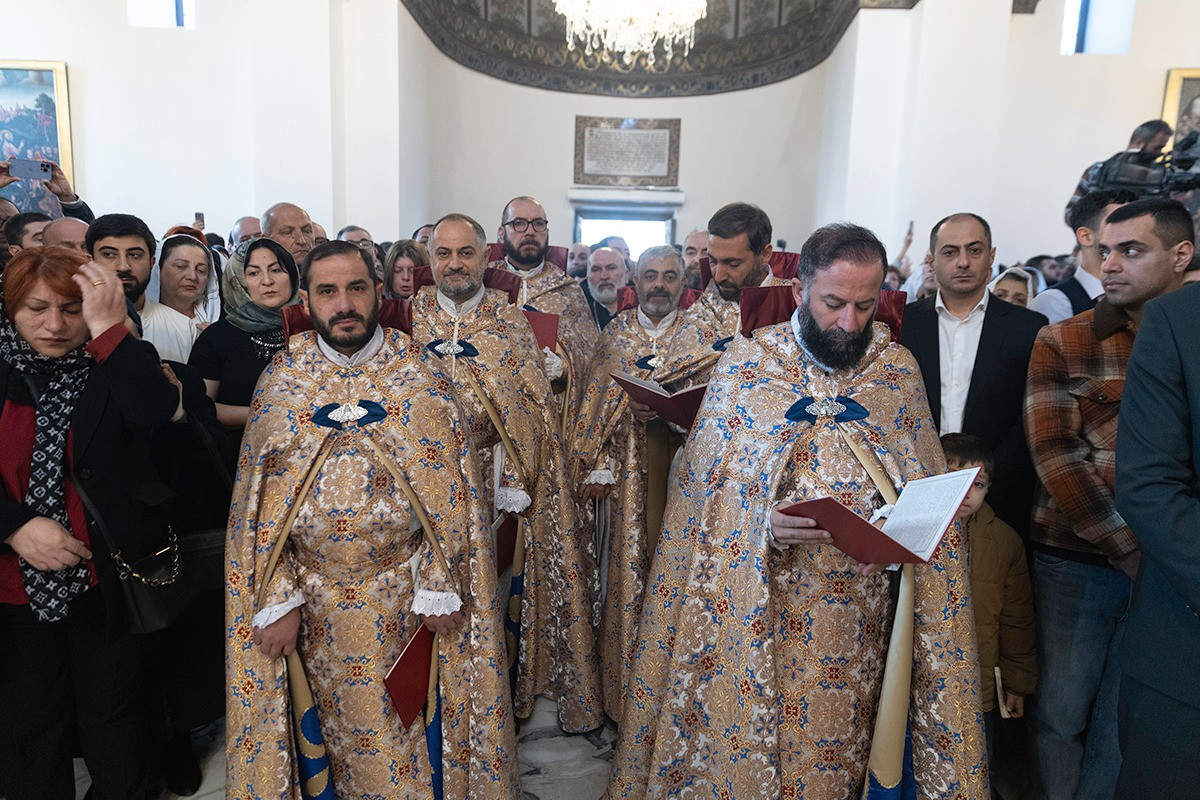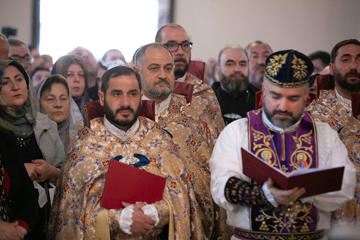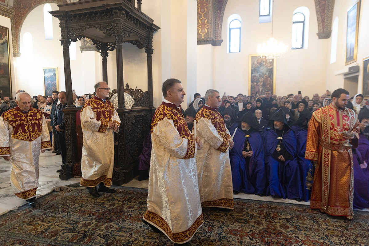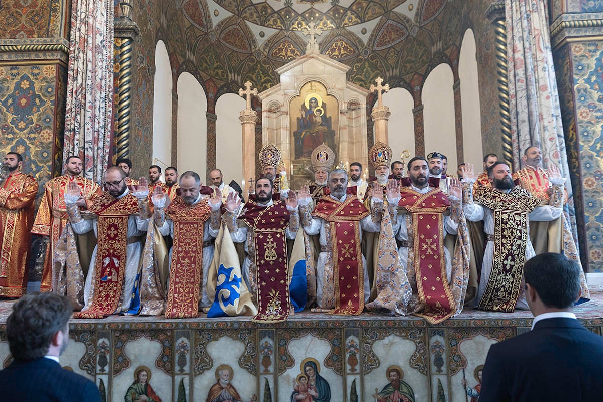 Վեհափառ Հայրապետին որպես առընթերականեր սպասավորում էին Կ․ Պոլսի Հայոց Պատրիարք Ամենապատիվ Տ․ Սահակ արքեպիսկոպոս Մաշալյանը և Մայր Աթոռ Սուրբ Էջմիածնի Արտաքին հարաբերությունների և արարողակարգի բաժնի տնօրեն Գերաշնորհ Տ. Նաթան արքեպիսկոպոս Հովհաննիսյանը։ Ընծայացուների խարտավիլակն էր ԱՄՆ Հայոց Արևելյան թեմի առաջնորդ Գերաշնորհ Տ. Մեսրոպ եպիսկոպոս Պարսամյանը։