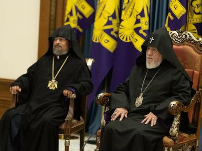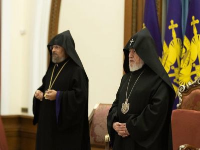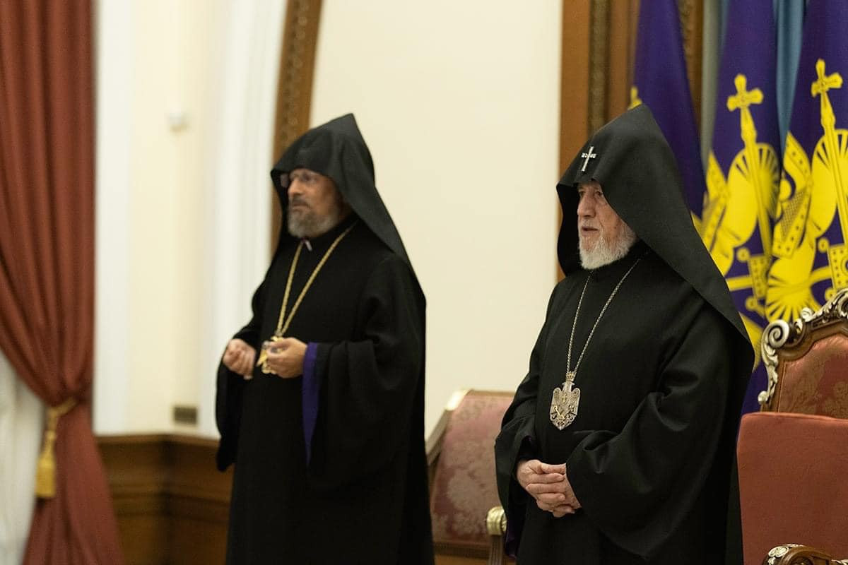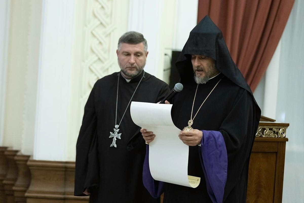 Մեծարյալների կյանքին, վաստակին ու գործունեությանն անդրադարձավ տիար Վարդան Օսկանյանը, ապա «Էջ Միածինն ի Հօրէ» շարականի երգեցողության ներքո բերվեց Հայրապետական սրբատառ կոնդակը և շքանշանները: