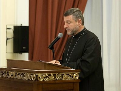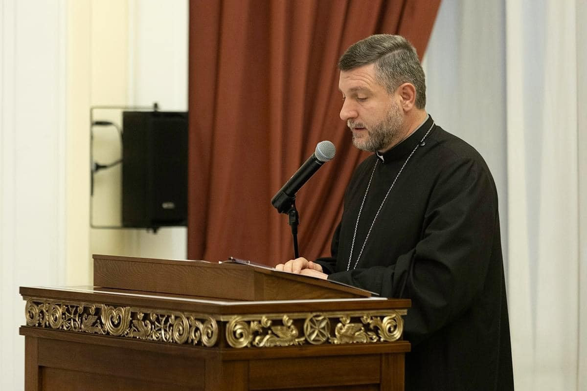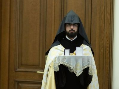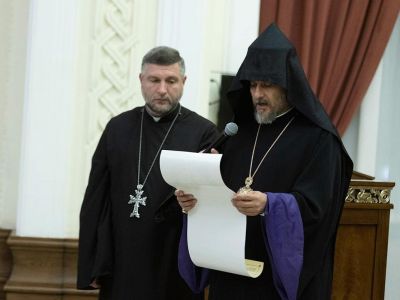 Արարողությունը բացվեց Տերունական աղոթքով, ապա ներկաներին ողջունեց Մայր Աթոռի Դիվանատան Ներեկեղեցական հարաբերությունների գրասենյակի տնօրեն Արժանապատիվ Տ. Պարույր ավագ քահանա Ավետիսյանը: