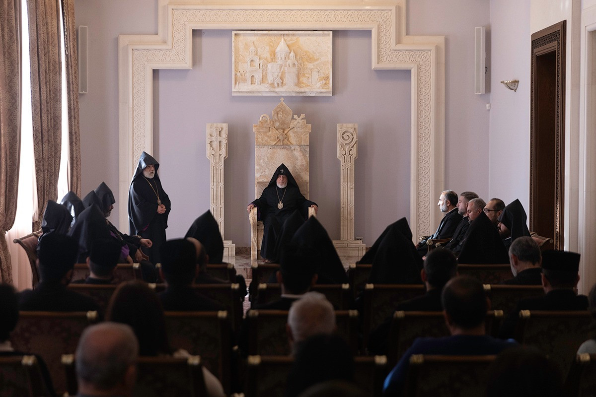 Վեհափառ Հայրապետը նաև բարձրորեն գնահատեց քահանա հայրերի վաստակը Մյուռոնօրհնության և Մայր Տաճարի վերաօծման արարողությունների կազմակերպման գործում, որոնք հոգևոր մխիթարության ու բերկրանքի առիթներ դարձան համայն աշխարհասփյուռ մեր ժողովրդի համար։