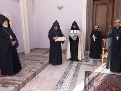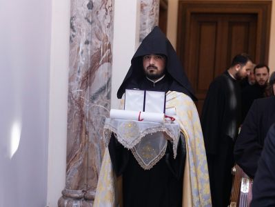 ներքո ներս բերվեցին Հայրապետական սրբատառ կոնդակները, որոնք ընթերցեց Մայր Աթոռի Եկեղեցական հայեցակարգային բաժնի տնօրեն Գերաշնորհ Տ. Վազգեն արքեպիսկոպոս Միրզախանյանը: