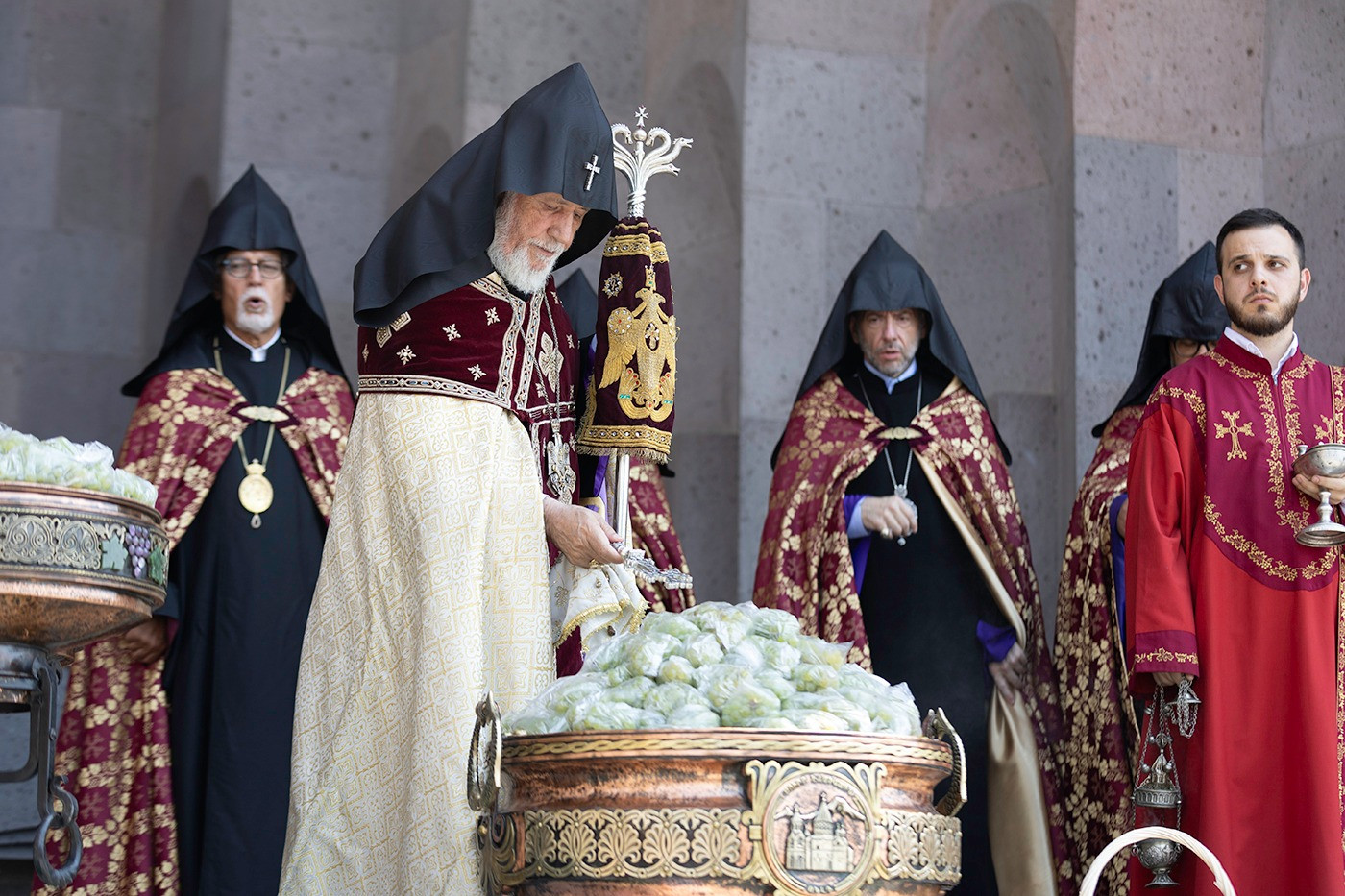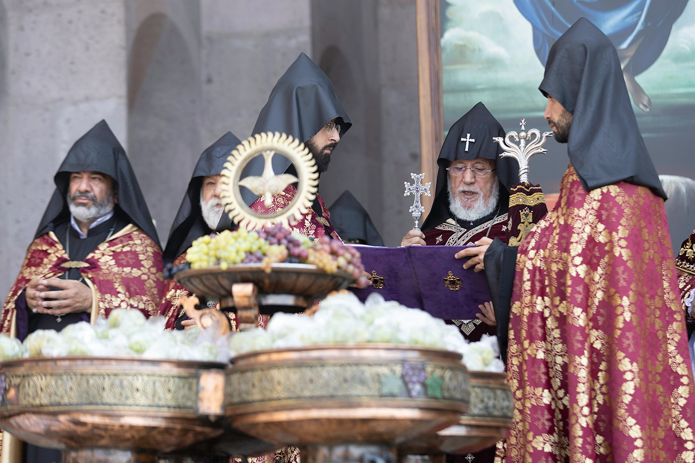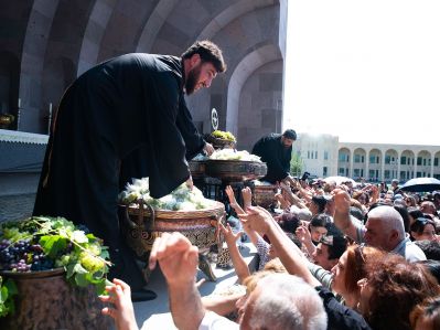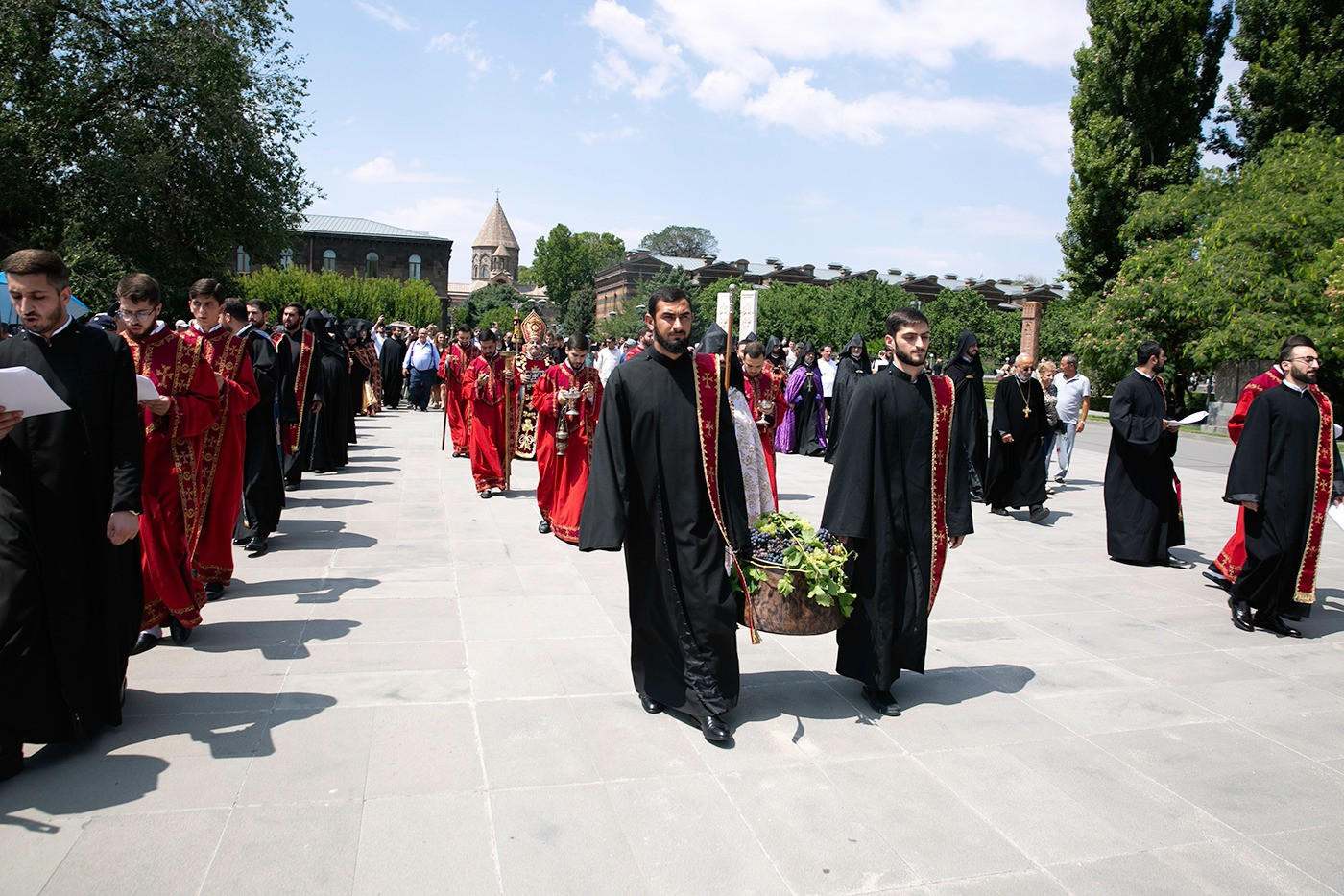 Սուրբ Պատարագի ավարտից հետո եկեղեցական թափորը Սուրբ Գայանե վանքից ուղղվեց դեպի Մայր Աթոռ Սուրբ Էջմիածնի Սուրբ Տրդատի բաց խորան, որտեղ հանդիսապետությամբ Ամենայն Հայոց Կաթողիկոսի, կատարվեց «Խաղողօրհնեքի» հանդիսավոր կարգը: Օրհնված խաղողի ողկույզները բաժանվեցին հավատավոր ժողովրդին: