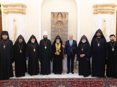 «Աշխարհաքաղաքական բարդ զարգացումներով փոթորկված է համայն աշխարհը, նաև մեր երկրների ու ժողովուրդների կյանքը։ Վերջին տարիներին ծանր փորձությունների ու կորուստների միջով անցավ մեր ժողովուրդը։ Տակավին հաղթահարված չեն Արցախի դեմ Ադրբեջանի սանձազերծած պատերազմի պատճառած հետևանքները։ Մենք շնորհակալ ենք Նորին Սրբությանը և Ռուս Եկեղեցուն աղետալի պատերազմի օրերին հայ ժողովրդին ցուցաբերած զորակցության և մատուցված աղոթքների համար։ Երախտապարտ ենք Դադիվանքի անխափան գործունեության և մեր միաբանների անվտանգության ապահովման ուղղությամբ Կիրիլ Պատրիարքի գործադրած ջանքերի համար։ Վստահ ենք, որ Ռուս Եկեղեցին և ՌԴ իշխանությունները կշարունակեն կարելի միջոցները գործադրել Արցախի հայկական հոգևոր ժառանգության պահպանության, արցախահայության հարազատ բնօրրան վերադարձի և Բաքվում գերության մեջ գտնվող, այս օրերին շինծու դատավարության և անարդարության ենթարկվող Արցախի քաղաքական ղեկավարության, զինվորականների և քաղաքացիական անձանց ազատ արձակման ուղղությամբ»,- նշեց Վեհափառ Հայրապետը։
