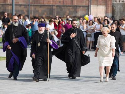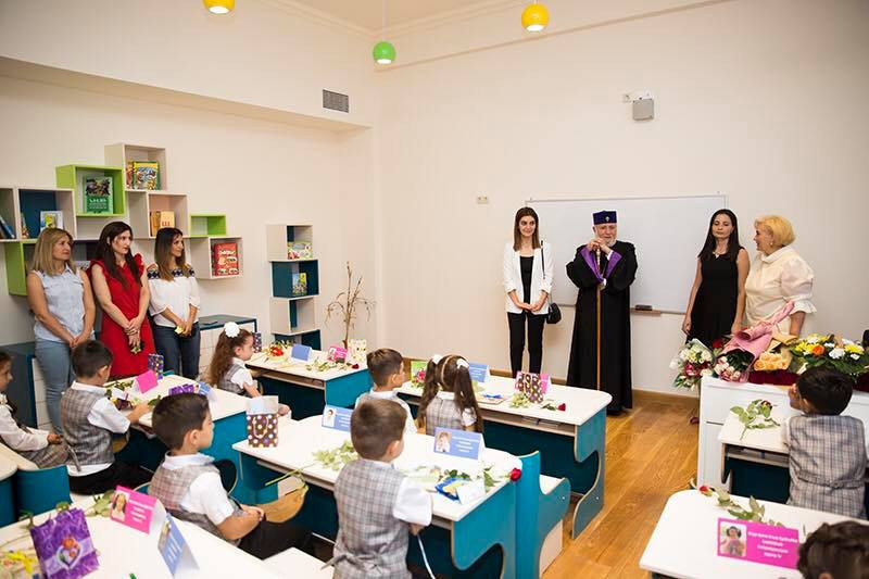 Հանդիսության ավարտին Վեհափառ Հայրապետն իր օրհնությունը բաշխեց առաջին դասարանցիներին, նաև մասնակցեց տասներկուերորդ դասարանցիների առաջին դասին։