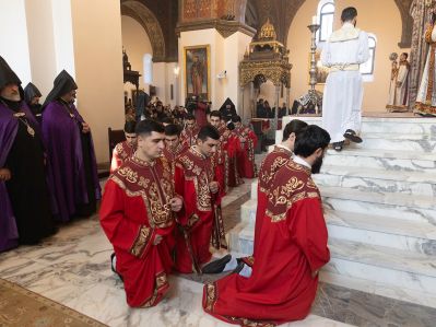 Նախօրդ օրը՝ դեկտեմբերի 23-ին, Մայր Տաճարի Իջման Սուրբ Սեղանի առջև տեղի էր ունեցել դպրության, ուրարակրության և կիսասարկավագության աստիճանների տվչության արարողությունը: