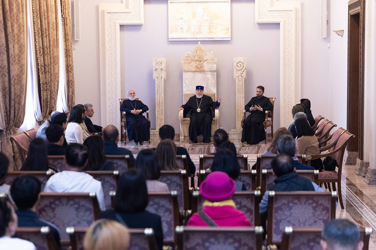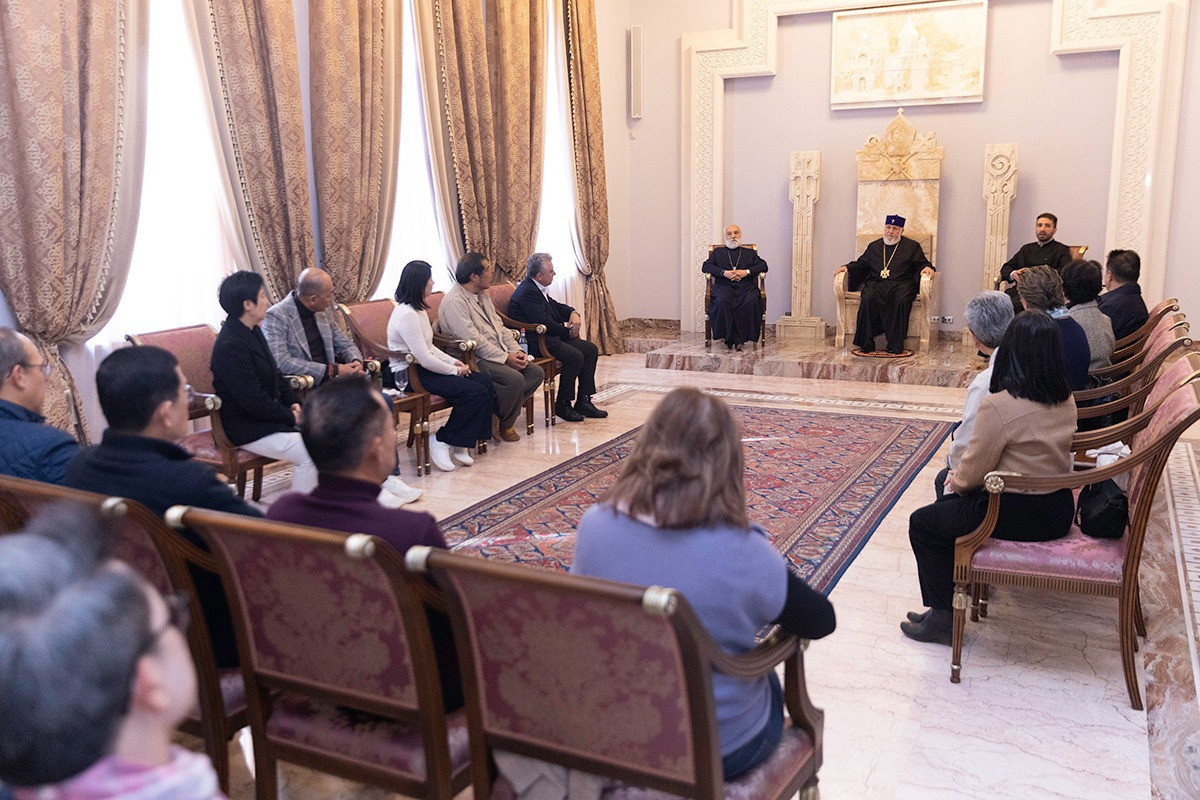 Հանդիպման սկզբում Տիար Արթինյանը Վեհափառ Հայրապետին ներկայացրեց հյուրերին և նրանց այցելության նպատակը, այն է` ճանաչել Հայաստանը որպես հարուստ մշակույթ ունեցող հնագույն քրիստոնյա երկիր: