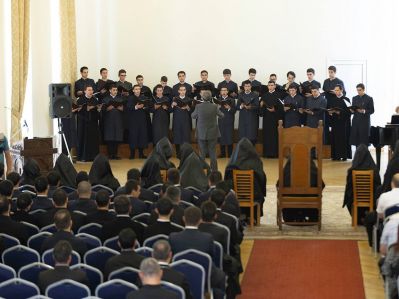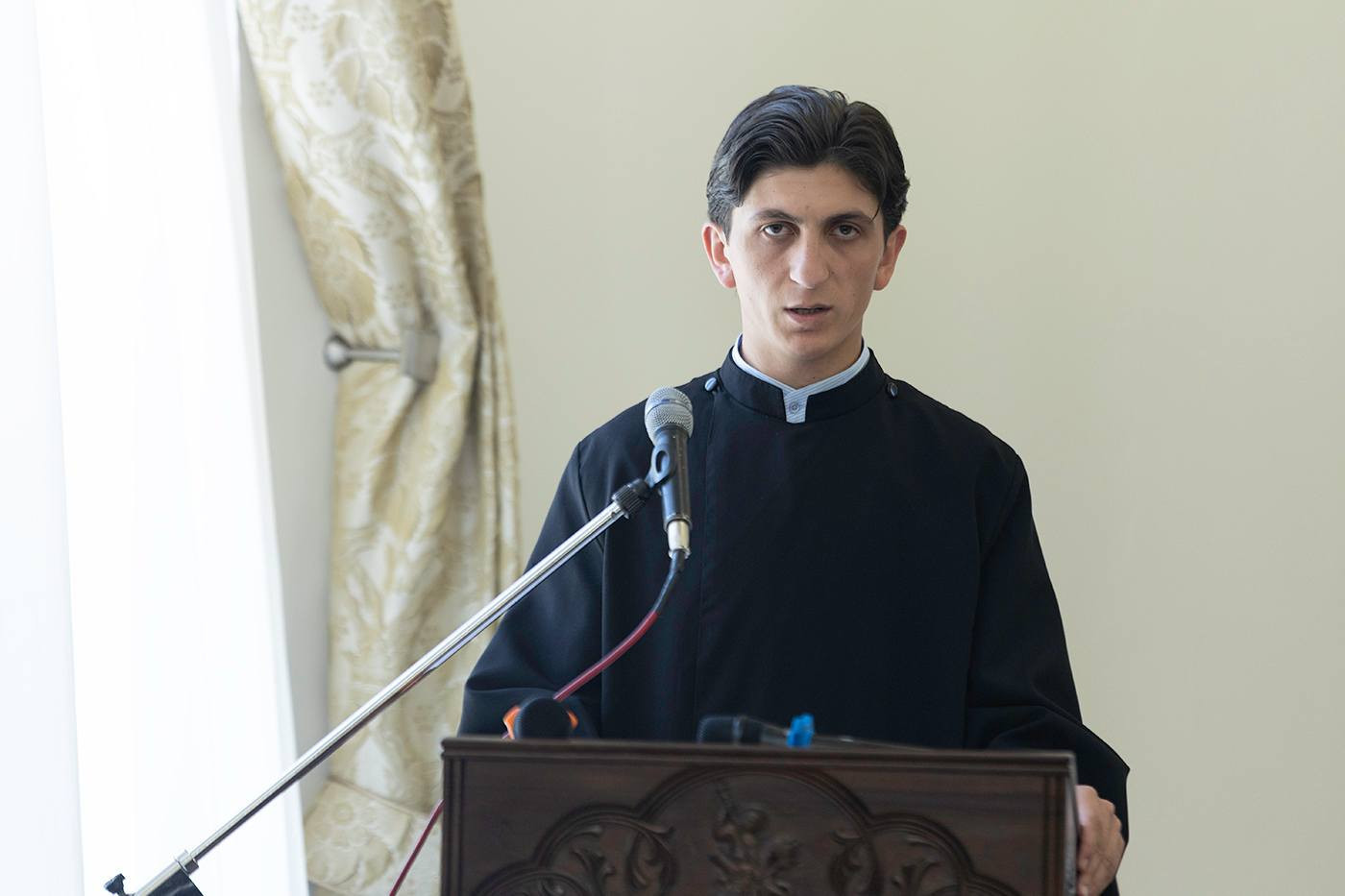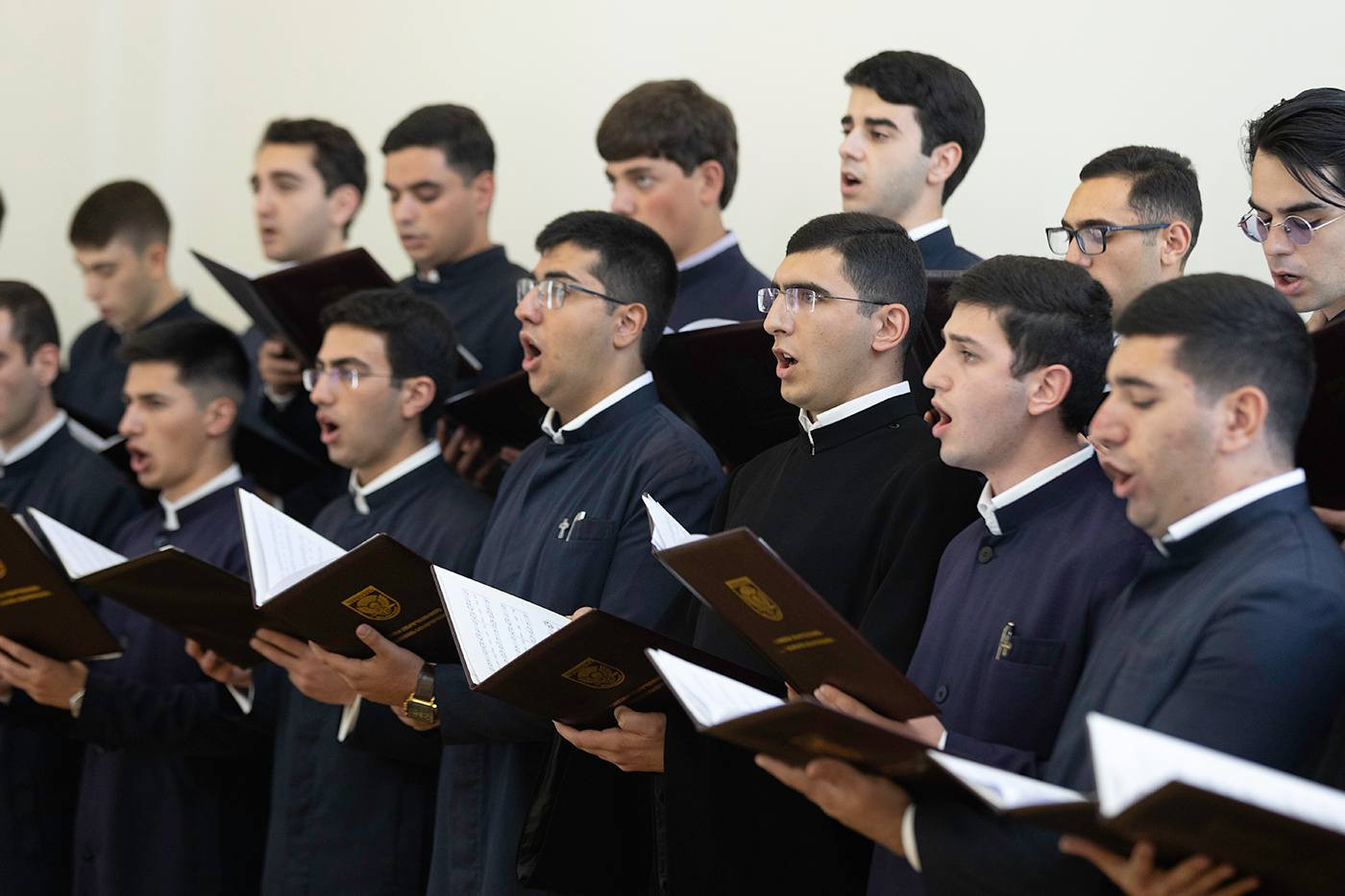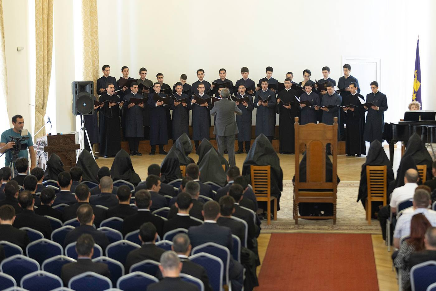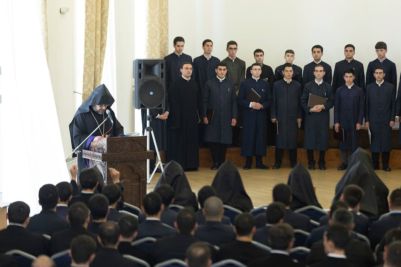 Գևորգյան հոգևոր ճեմարանի երգչախմբի կատարումներից հետո դասախոսների անունից ներկաներին խոսք ուղղեց պ․գ․թ․ Արսեն Հարությունյանը, իսկ ուսանողության անունից սրտի խոսք ասաց 6-րդ լսարանի սան Բարեշնորհ Տոնո սարկավագ Ղազարյանը։