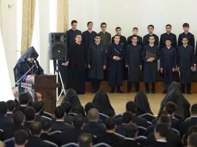 Ամենայն Հայոց Կաթողիկոսը նաև շեշտեց, որ մեր երկրին պատուհասած փորձությունները հնարավոր է հաղթահարել միայն առ Աստված ապավինությամբ ու ազգային միասնությամբ, ամուր պահելով հավատը, քրիստոնեական արժեքներով զորացնելով ու վեր բարձրացնելով մեր կյանքը և հաստատելով այն արդարության շավիղներում՝ զերծ պառակտումներից ու փլուզումներից, անտարբերությունից, անհոգի ու մակերեսային մտայնությունից։ Այս առնչությամբ Հայրապետը հորդորեց ապագա եկեղեցականներին իրենց ծառայությամբ հայորդիների սրտերում հաստատել սիրո, հույսի, հավատի տերունապարգև շնորհները և սեփական օրինակով առատացնել հավատարմությունն ու նվիրումը հայրենիքի, հայի ինքնության ու ազգային սրբությունների նկատմամբ։