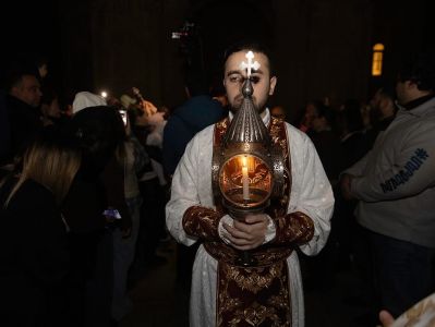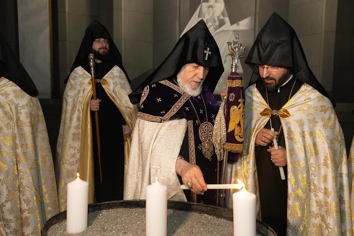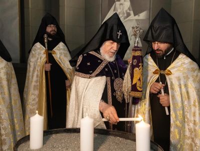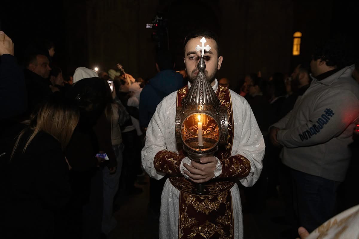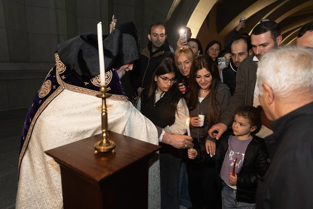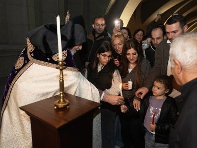 Սուրբ Պատարագի ավարտին Ամենայն Հայոց Կաթողիկոսը բարձրացավ Սուրբ Խորան և Սուրբ Սեղանի կանթեղից վառեց Տեր Հիսուս Քրիստոսին խորհրդանշող կենսատու մոմը, որը բաշխվեց հավատացյալներին: