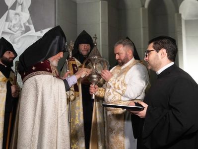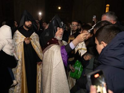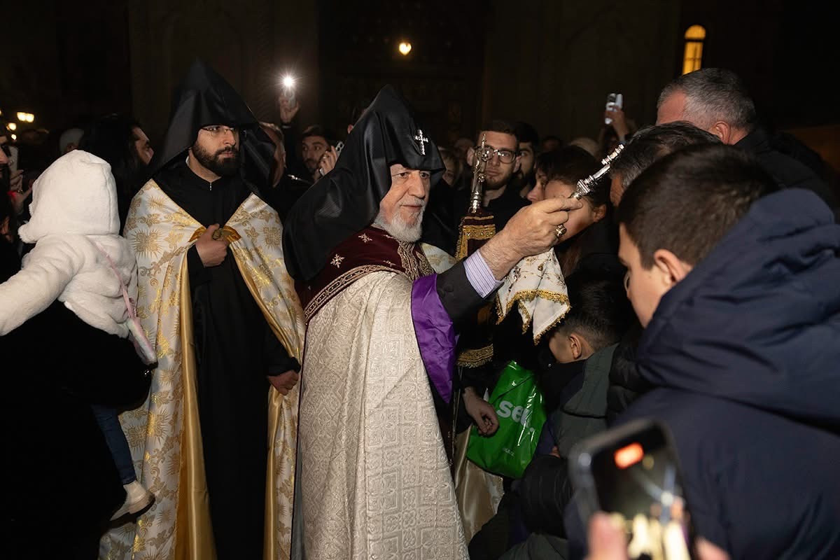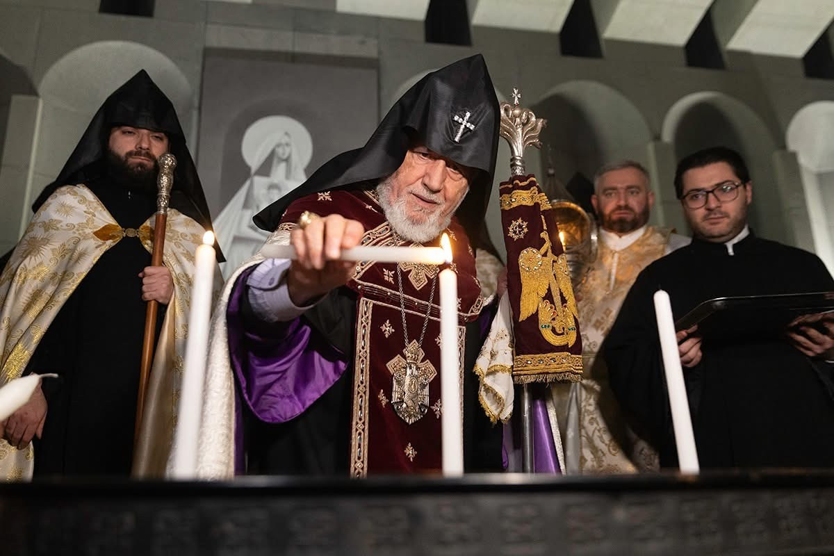 Սուրբ Պատարագի ավարտին՝ նախատոնակի արարողության ընթացքում, Ամենայն Հայոց Կաթողիկոսը բարձրացավ Ավագ Սուրբ Խորան և Սուրբ Սեղանի կանթեղից վառեց Հիսուս Քրիստոսին խորհրդանշող մոմը, որից կենսատու լույսը բաշխվեց հավատացյալներին: