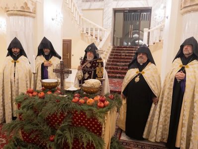 Այնուհետև Մայր Աթոռի միաբանությունը մեկտեղվեց Վեհարանում, ուր, նախագահությամբ Վեհափառ Հայրապետի, կատարվեց տարվա առաջին Տնօրհնեքը: