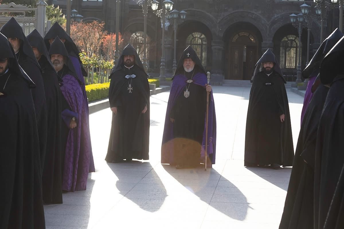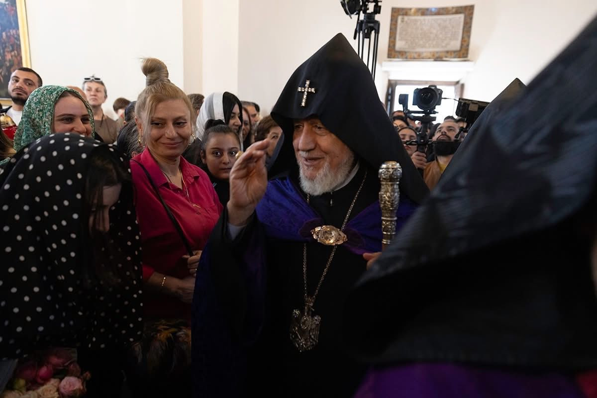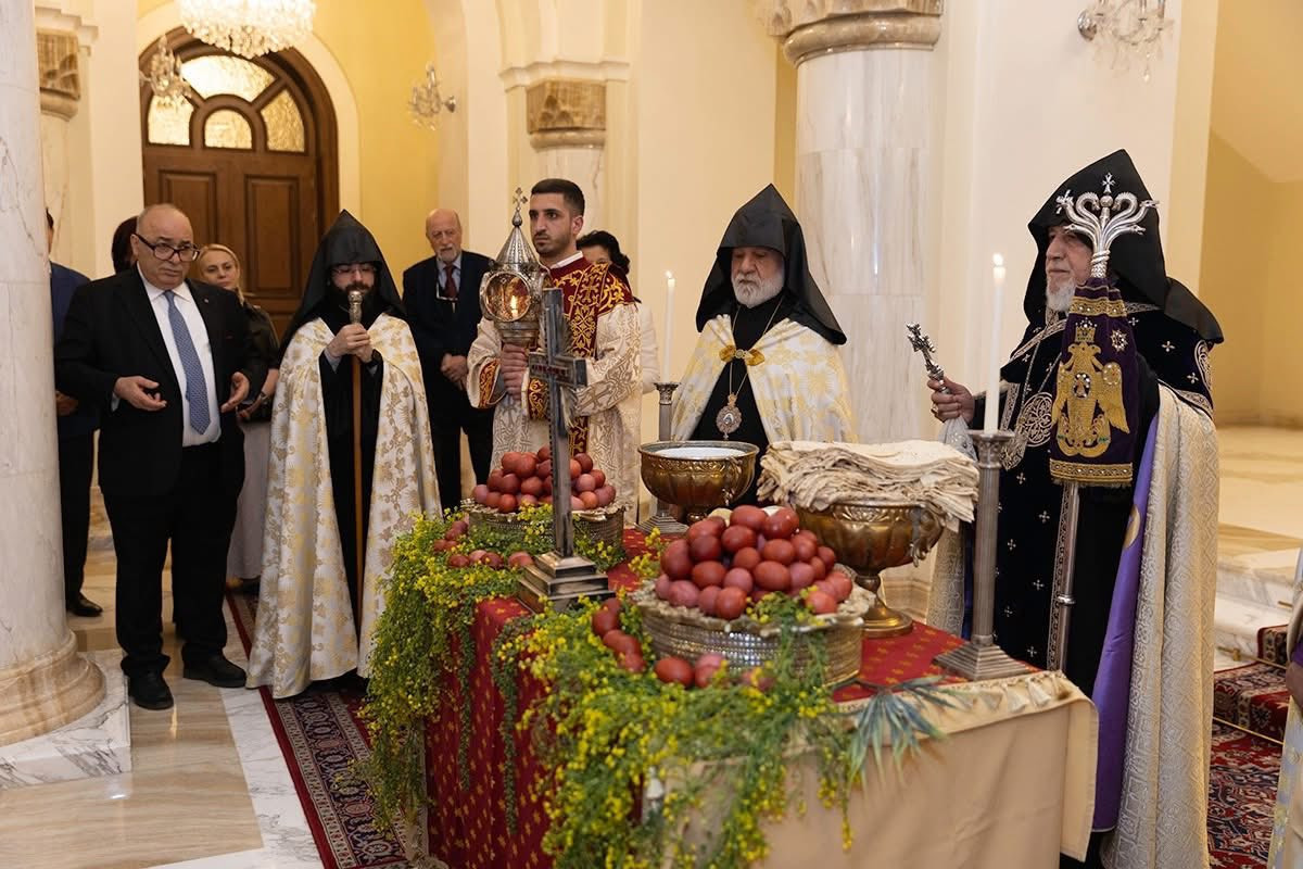 Պատարագի սրբազան արարողությունից հետո Մայր Աթոռի միաբանությունը մեկտեղվեց Վեհարանում, ուր, նախագահությամբ Հայոց Հովվապետի, կատարվեց Սուրբ Հարության տնօրհնեք:
