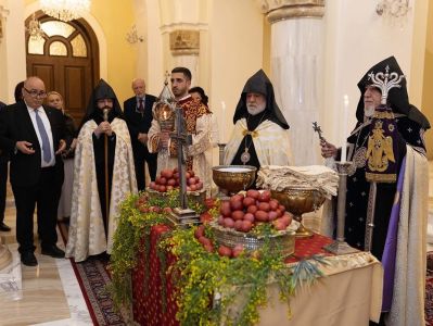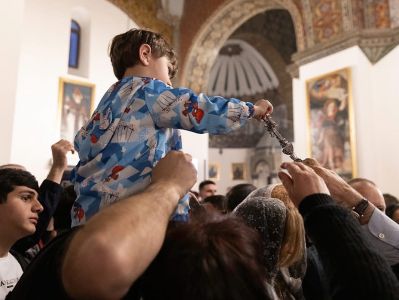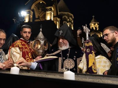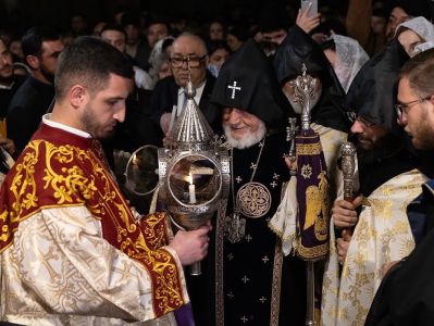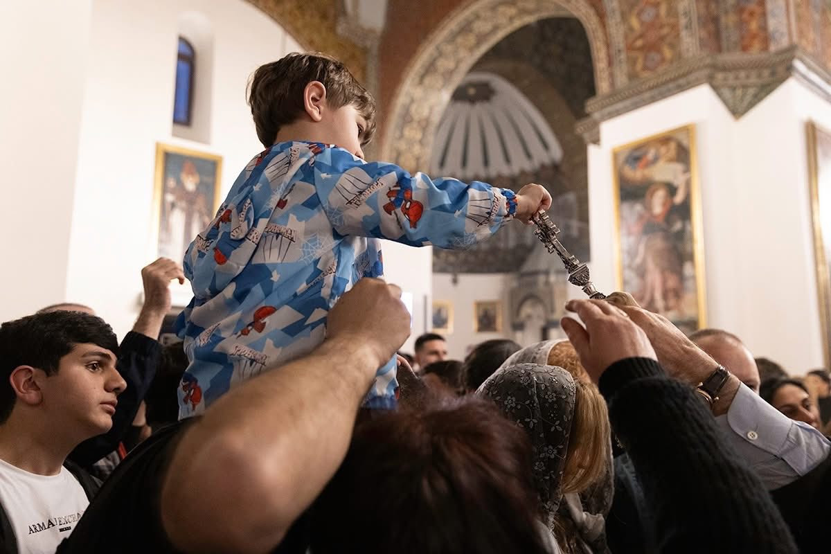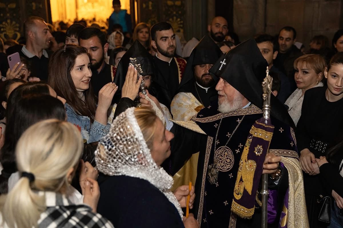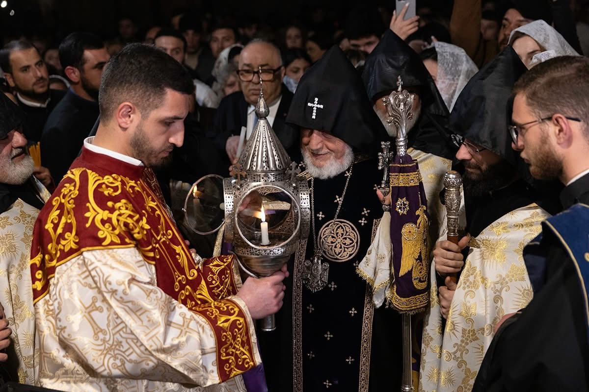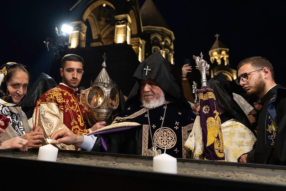 Հավարտ Սուրբ Պատարագի՝ Ամենայն Հայոց Կաթողիկոսը բարձրացավ Ավագ Սուրբ Խորան և Սուրբ Սեղանի կանթեղից վառեց Հիսուս Քրիստոսին խորհրդանշող մոմը, որից կենսատու լույսը բաշխվեց հավատացյալներին:
