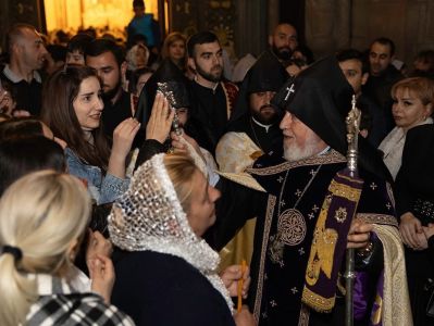 Ապրիլի 19-ին՝ Ավագ շաբաթ օրը երեկոյան, մեր Տեր և Փրկիչ Հիսուս Քրիստոսի Հրաշափառ Սուրբ Հարության տոնի առիթով, Ն.Ս.Օ.Տ.Տ. Գարեգին Երկրորդ Ծայրագույն Պատրիարք և Ամենայն Հայոց Կաթողիկոսի հանդիսապետությամբ, Միածնաէջ Մայր Տաճարում մատուցվեց Սուրբ և Անմահ Պատարագ: