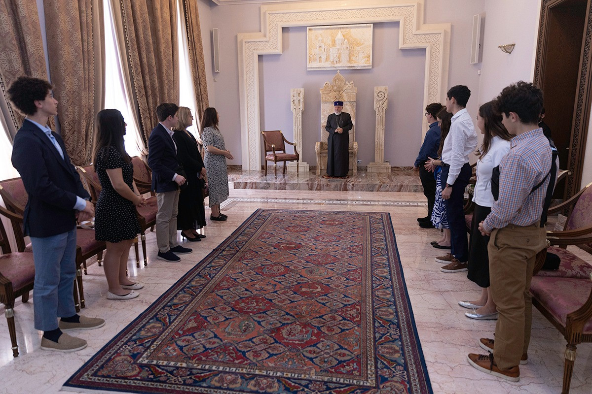 Հանդիպմանը Ամենայն Հայոց Կաթողիկոսն իր գնահատանքն ու օրհնությունը բերեց վարժարանի սաներին՝ ընդգծելով, որ ավանդույթ դարձած այցելությունները Հայաստան լավագույն հնարավորությունն են ընձեռում հաղորդ դառնալու հայրենական կյանքին, հոգևոր ժառանգությանն ու սրբություններին։ Նորին Սրբությունը վստահեցրեց, որ այցն անջնջելի դրոշմ է թողնելու պատանիների հոգում՝ զորացնելով ազգային ոգին ու գիտակցությունը։