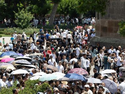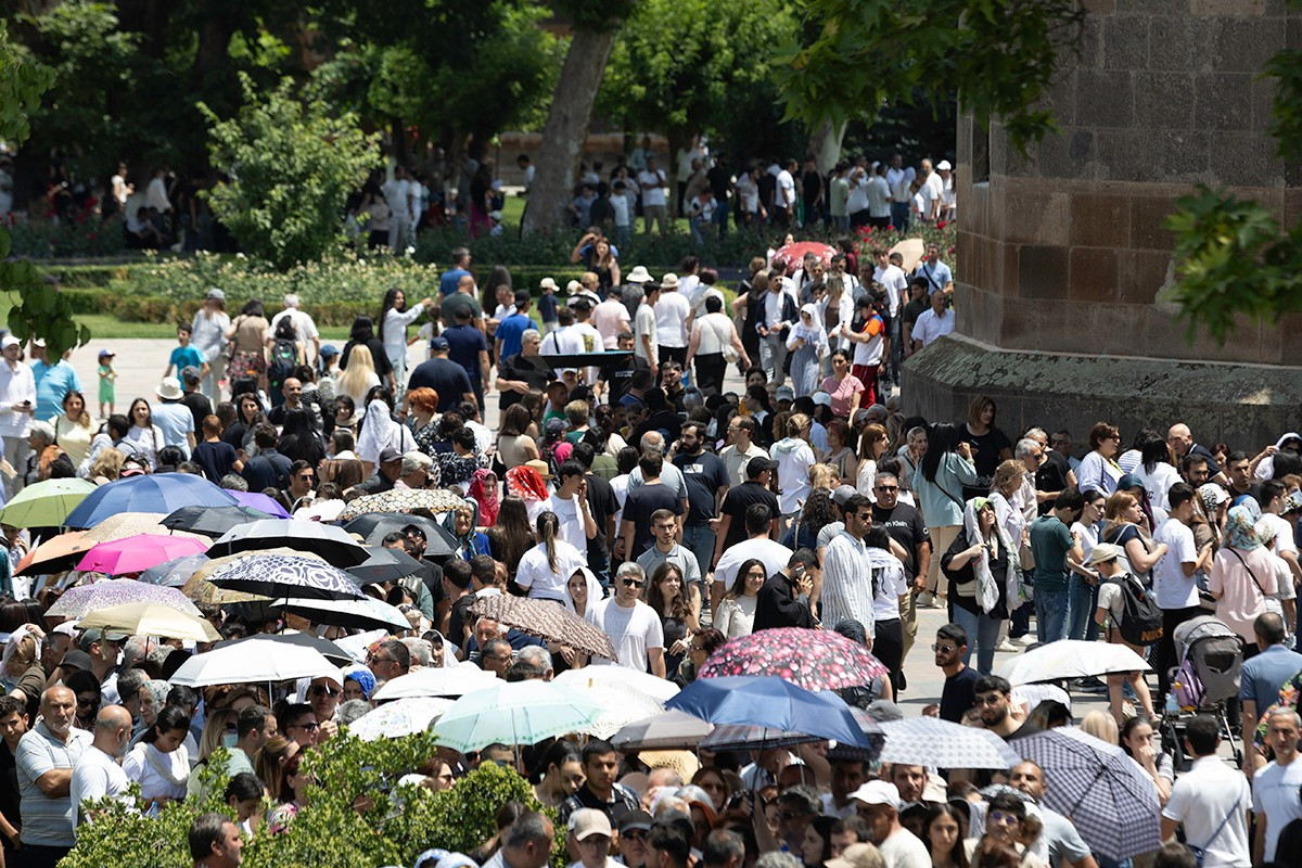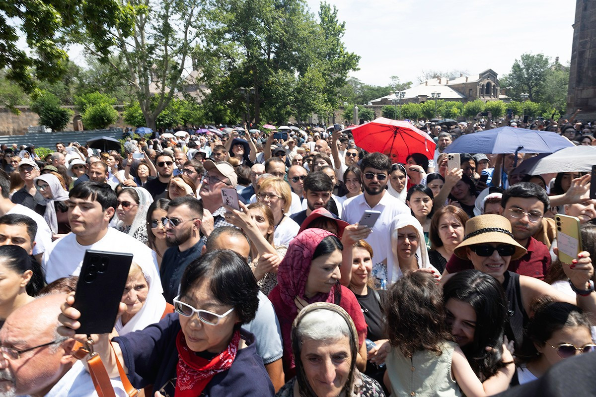 Հայրապետիս համար հոգևոր անհուն ուրախություն է Կաթողիկե Սուրբ Էջմիածնի տոնի հոգենորոգ այս օրը Մայր Աթոռ Սուրբ Էջմիածնում համախմբված տեսնել ազգիս հազարավոր զավակների՝ հայրենի մեր երկրի տարբեր շրջաններից և սփյուռքի համայնքներից։ Հայրական սիրով ողջունում ենք ձեզ և բերում Հայրապետական Մեր օրհնությունն ու բարեմաղթանքները ամենքիդ։