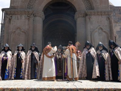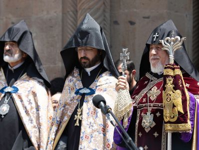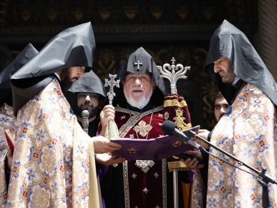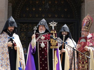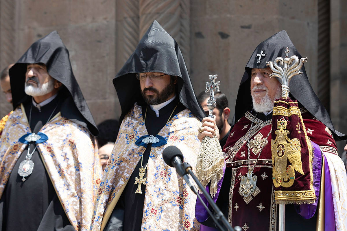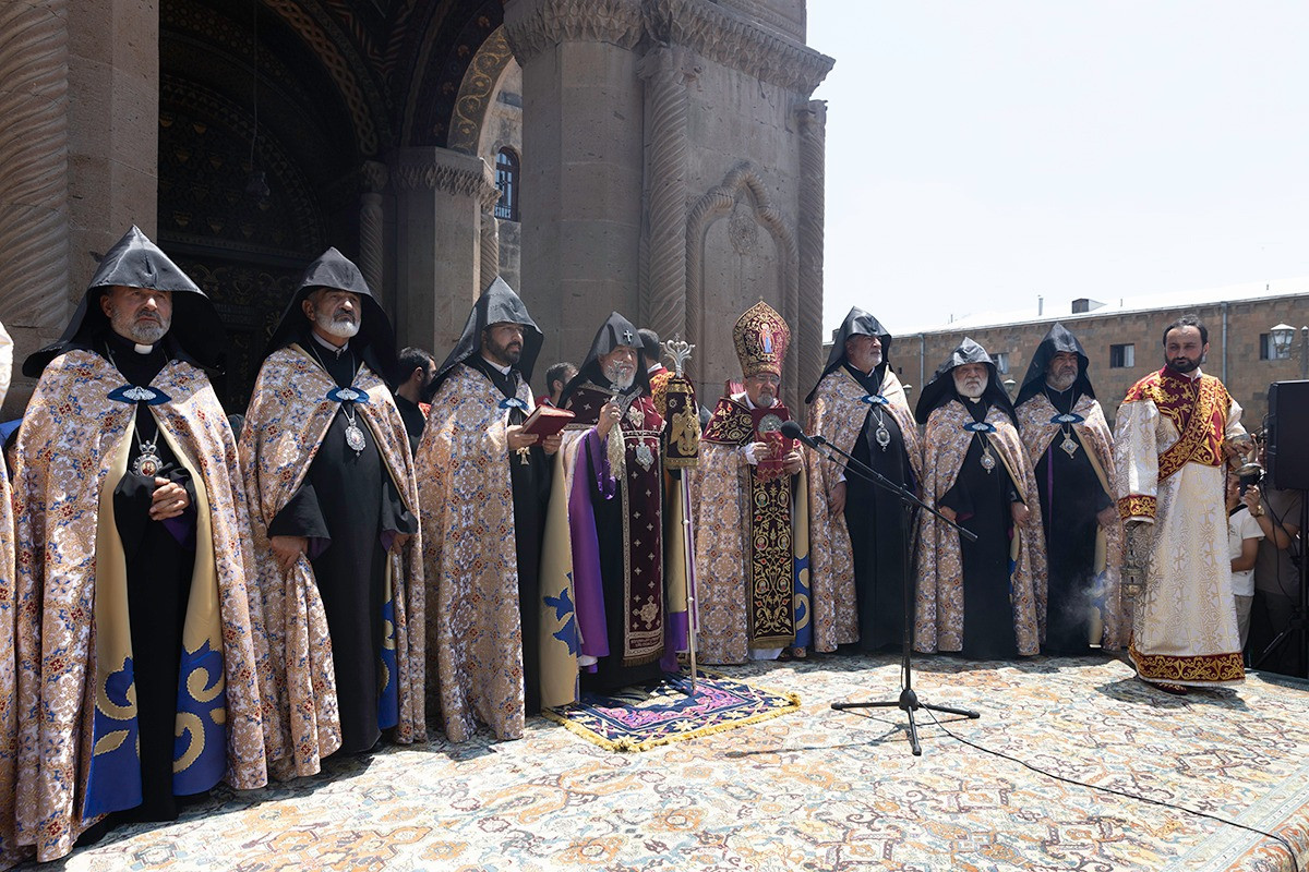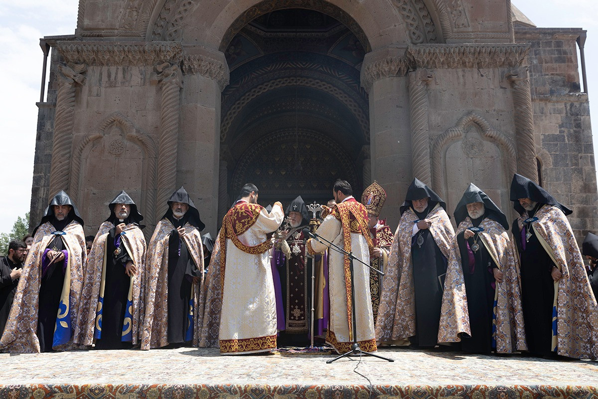 Հավաքվել ենք Քրիստոսի էջքով նվիրագործված այս սրբավայրում՝ վերանորոգելու սիրո ու նվիրումի մեր ուխտը առ Աստված ու հայրենին և առ Սուրբ Էջմիածինը, որը Տիրոջ նախախնամությամբ դարձավ մեր ազգի հոգևոր զարթոնքի զորությունը, մեր ինքնության դարբնոցը և նոր շունչ ու ավյուն հաղորդեց մեր ժողովրդին, մեր բազմադարյա պատմության ընթացքին։ Աստված մեզ ընդունեց իբրև ազգ սուրբ և ժողովուրդ սեփական (Ա Պետր. 2.9) և Սուրբ Գրիգոր Լուսավորիչ Հայրապետի տեսիլքով ազգիս պարգևեց Սուրբ Էջմիածինը որպես փրկության տապան և մեր հավատքի անսասան վեմ ու հիմնասյուն։ «Ոչ ոք չի կարող դնել ուրիշ հիմք, քան դրված այն հիմքը, որ Հիսուս Քրիստոսն է» (Ա Կորնթ. 3.11),- ասում է Պողոս առաքյալը։ Մայր Աթոռ Սուրբ Էջմիածինը Աստծո հետ մեր ժողովրդի հավերժական ուխտի խորհրդանիշն է, որ դրոշմված է ամեն հայի հոգում։ Սուրբ Էջմիածինը մեր հոգևոր էությունն ու ազգային դիմագիծն է, մեր սիրտն ու ոգին է, մեր անցյալն ու ներկան և մեր ապագան։ Սուրբ Էջմիածնով է միշտ միասնական մնացել մեր ժողովուրդը։ Չկա Սուրբ Էջմիածին առանց հայության, և չկա հայություն առանց Սուրբ Էջմիածնի։ «Ի վերայ Աջոյն և Սրբոյ Էջմիածնի ամենայն ազգն հայոց կապեալ կան»,- ճշմարտապես արձանագրում է Առաքել Դավրիժեցի պատմիչը։