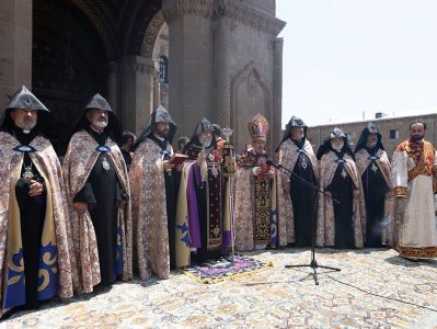 Սուրբ Պատարագի ավարտին Մայր Տաճարի զանգակատան առջև կատարվեց Սուրբ Էջմիածնի մաղթանք: Ներկա հավատացյալ ժողովուրդը և եկեղեցականաց դասը աղոթք բարձրացրեցին առ Աստված Մայր Աթոռ Սուրբ Էջմիածնի անսասանության և հավետ պայծառության համար։