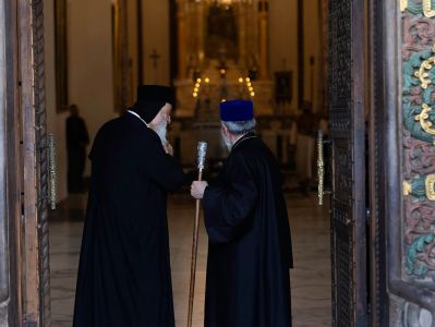 Մայր Տաճարի ղողանջների ներքո Սուրբ Էջմիածնի միաբանությունը Ամենայն Հայոց Կաթողիկոսին և Համայն Արևելքի Ասորի Ուղղափառ Եկեղեցու Ընդհանրական Պատրիարքին թափորով առաջնորդեց Միածնաէջ Մայր Տաճար, ուր կատարվեց «Հրաշափառի» արարողություն։