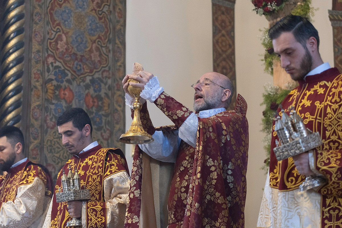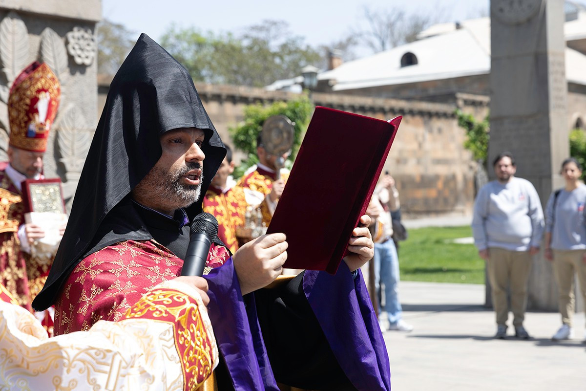 Պատարագիչն էր Մայր Աթոռ Սուրբ Էջմիածնի Գևորգյան հոգևոր ճեմարանի ասպիրանտուրայի բաժնի ղեկավար Գերաշնորհ Տ․ Դանիել եպիսկոպոս Ֆընտըգյանը։
