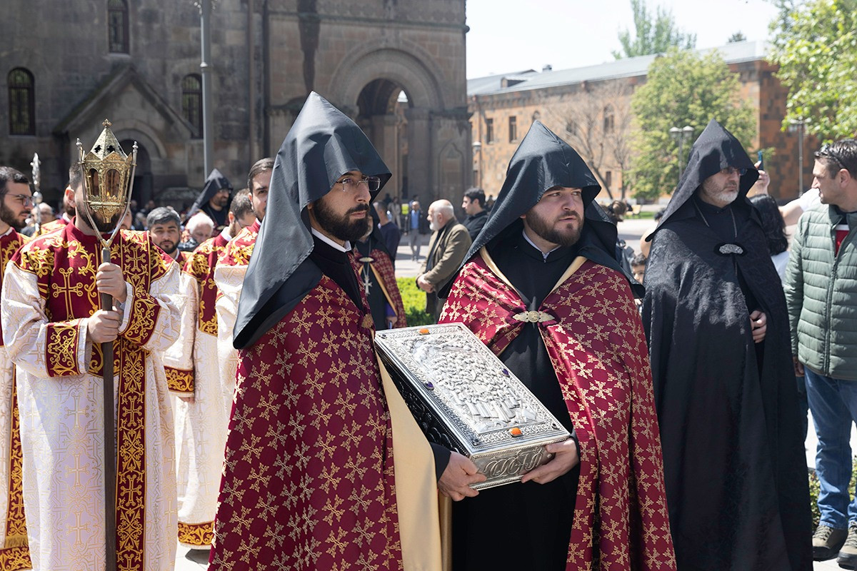 Սուրբ Պատարագի ավարտին եկեղեցականների թափորը, կրելով սուրբ նահատակների մասունքարանը, ուղղվեց դեպի Մայր Տաճարի շրջափակ, ուր Աղոթքի և ուխտի խաչքարի առջև, հանդիսապետությամբ Ամենայն Հայոց Կաթողիկոսի, կատարվեց Հայոց Ցեղասպանության սուրբ նահատակների բարեխոսական կարգ: