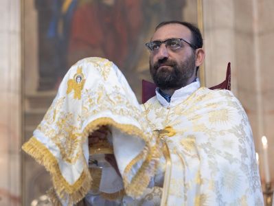 Պատարագիչն էր Մայր Աթոռ Սուրբ Էջմիածնի դիվանապետ Գերաշնորհ Տ. Արշակ արքեպիսկոպոս Խաչատրյանը: