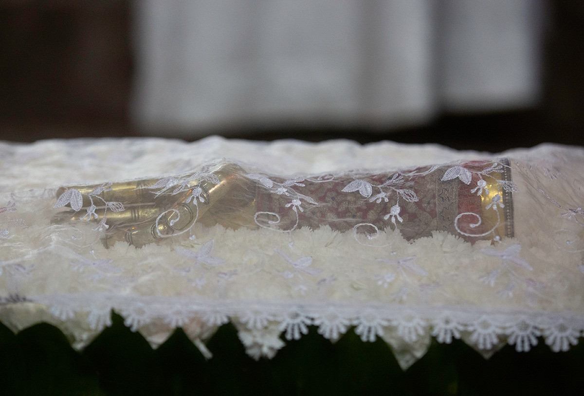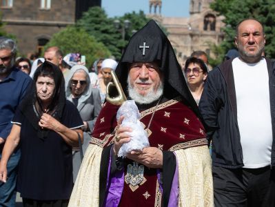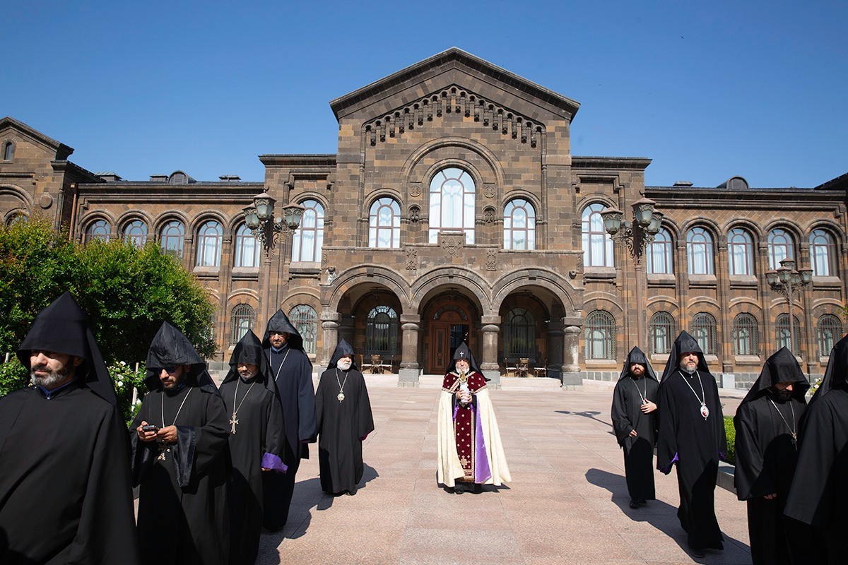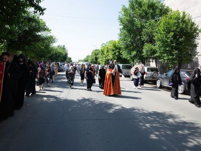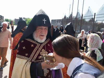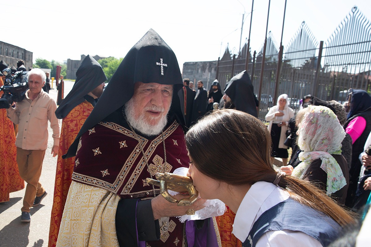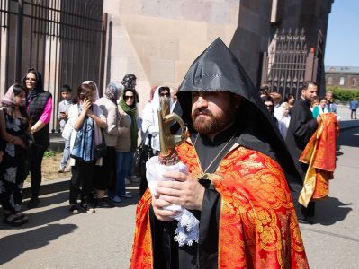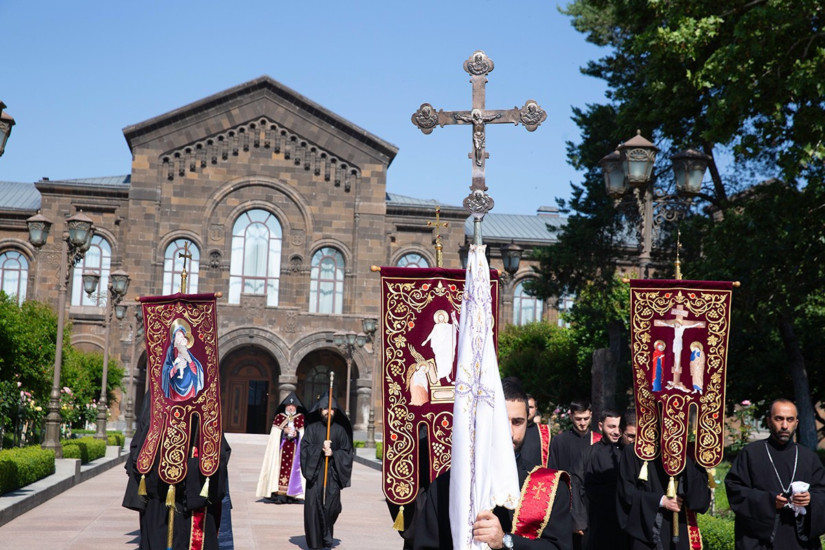 Առավոտյան Մայր Աթոռ Սուրբ Էջմիածնից եկեղեցականների թափորը հավատացյալների ուղեկցությամբ, Էջմիածնի Հայորդյաց տան սաների թմբուկների զարկերի ներքո, շարժվեց դեպի Սուրբ Հռիփսիմե վանք` տանելով սուրբ Հռիփսիմեի մասունքները: Սուրբ Գրիգոր Լուսավորչի կամարի առջև Ամենայն Հայոց Հայրապետը, սրբազան Աջով օրհնելով հոգևոր դասին և ներկա բարեպաշտ ժողովրդին, այն փոխանցեց Մայր Աթոռի լուսարարապետի պաշտոնակատար Հոգեշնորհ Տ. Հարություն վարդապետ Կիրակոսյանին: