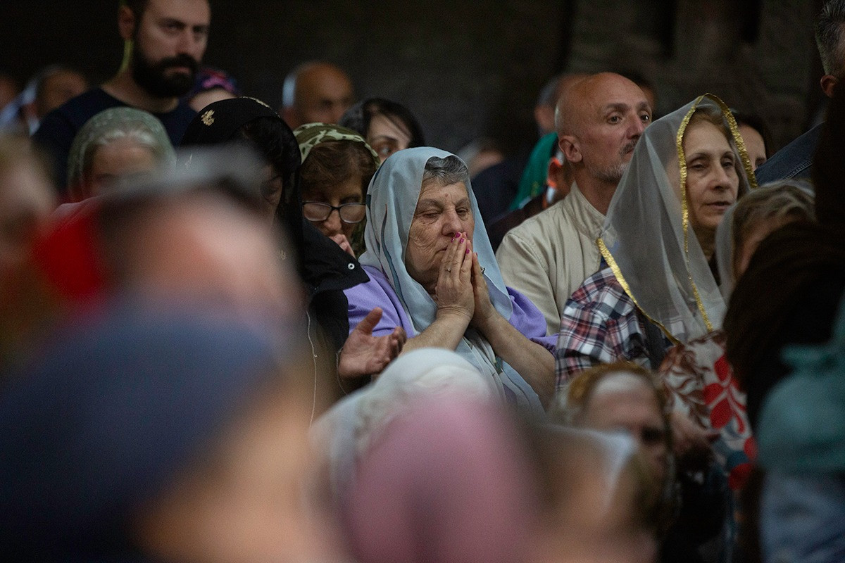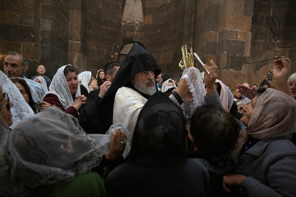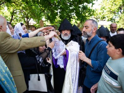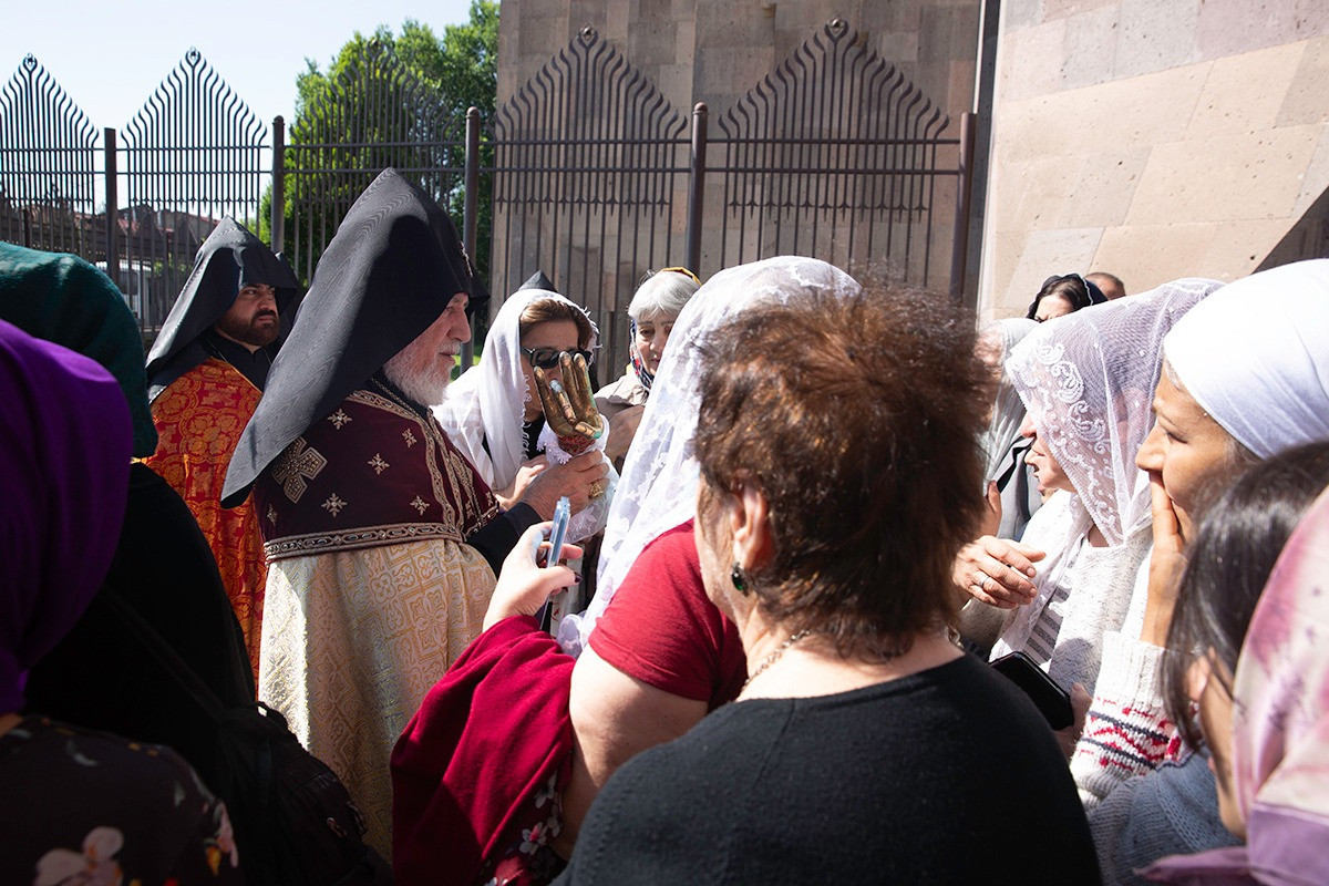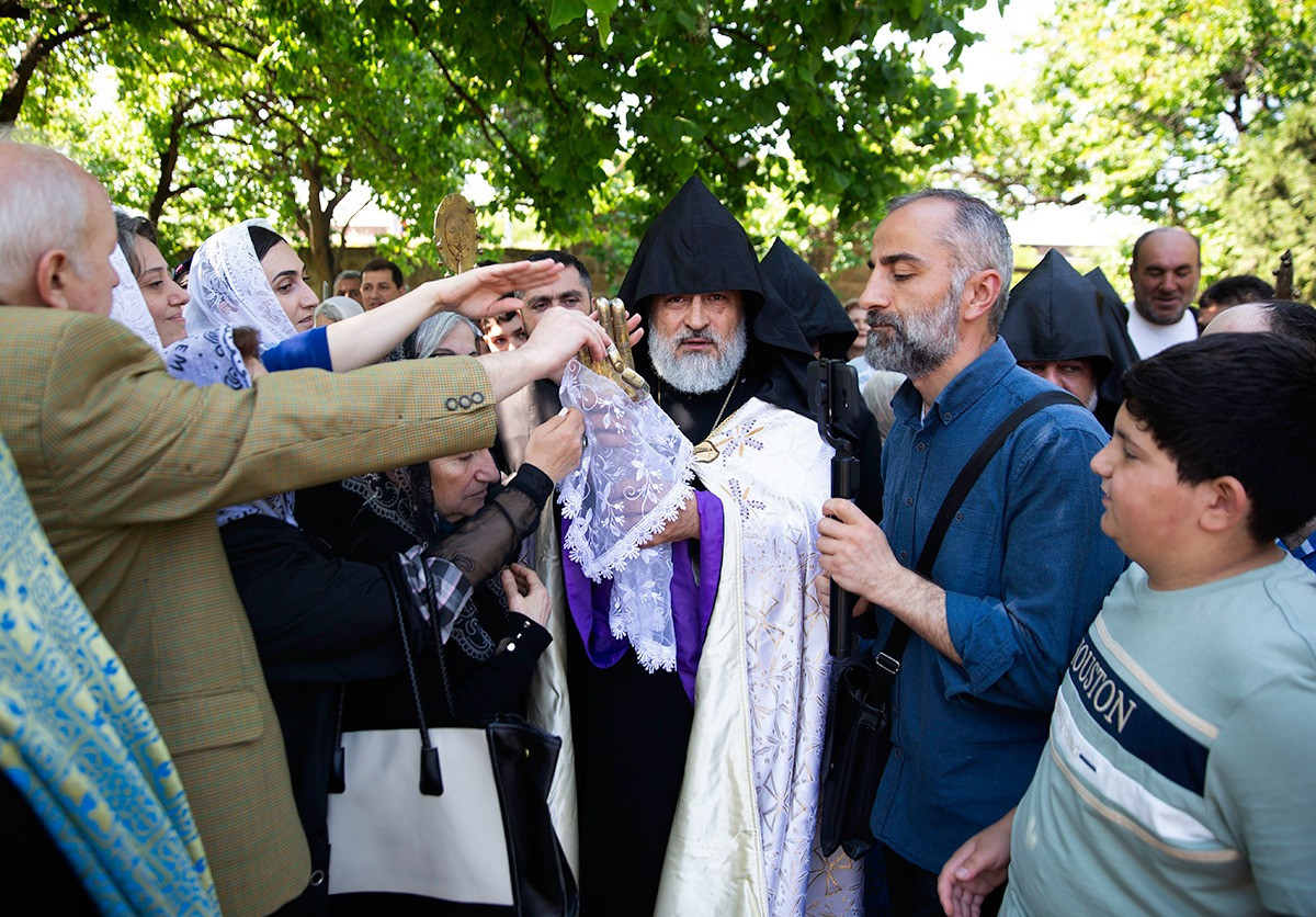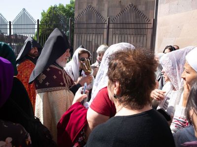 Սուրբ Հռիփսիմե վանքի առջև թափորը դիմավորեցին վանքի հոգևոր սպասավորները և տարբեր վայրերից ժամանած բազում ուխտավորներ` Մայր Աթոռ Սուրբ Էջմիածնի Վանորեից տեսուչ Գերաշնորհ Տ. Արտակ եպիսկոպոս Տիգրանյանի գլխավորությամբ: