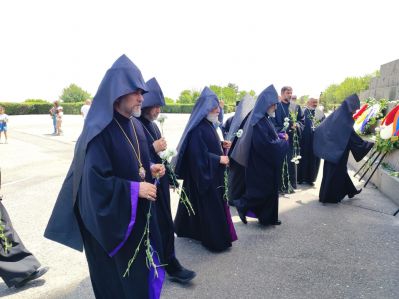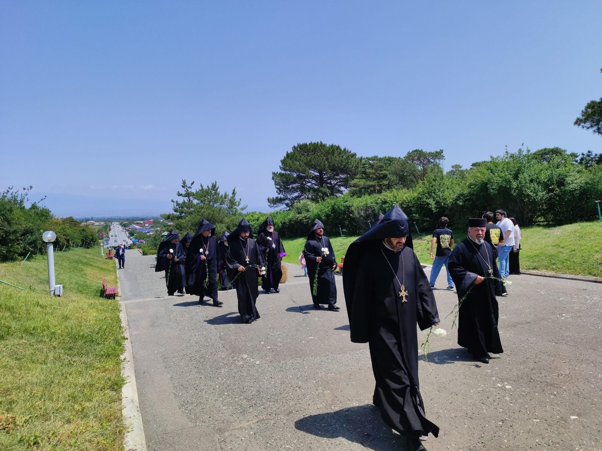 Նույն օրը Մայր Աթոռ Սուրբ Էջմիածնի միաբանները Գերաշնորհ Տ. Նաթան արքեպիսկոպոս Հովհաննիսյանի գլխավորությամբ այցելեցին Սարդարապատի հուշահամալիր, որտեղ Արմավիրի թեմի առաջնորդ Գերաշնորհ Տ. Սիոն արքեպիսկոպոս Ադամյանի, թեմի եկեղեցականների ուղեկցությամբ հոգևորականները ծաղկեպսակ զետեղեցին հուշակոթողի առջև, ապա աղոթեցին մայիսյան հերոսամարտերում զոհված քաջորդիների հոգիների հանգստության համար: