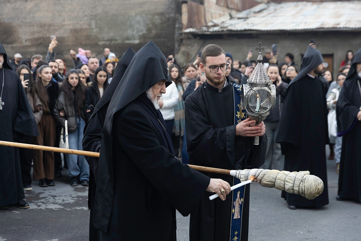 Այնուհետև «Քրիստոս փառաց» տաղի ներքո Մայր Տաճարի Իջման Սուրբ Սեղանի կանթեղից վառված մոմից Նորին Սրբությունը Հիսուս Քրիստոսին խորհրդանշող կենսատու լույսը փոխանցեց ներկա հավատավոր ժողովրդին:
