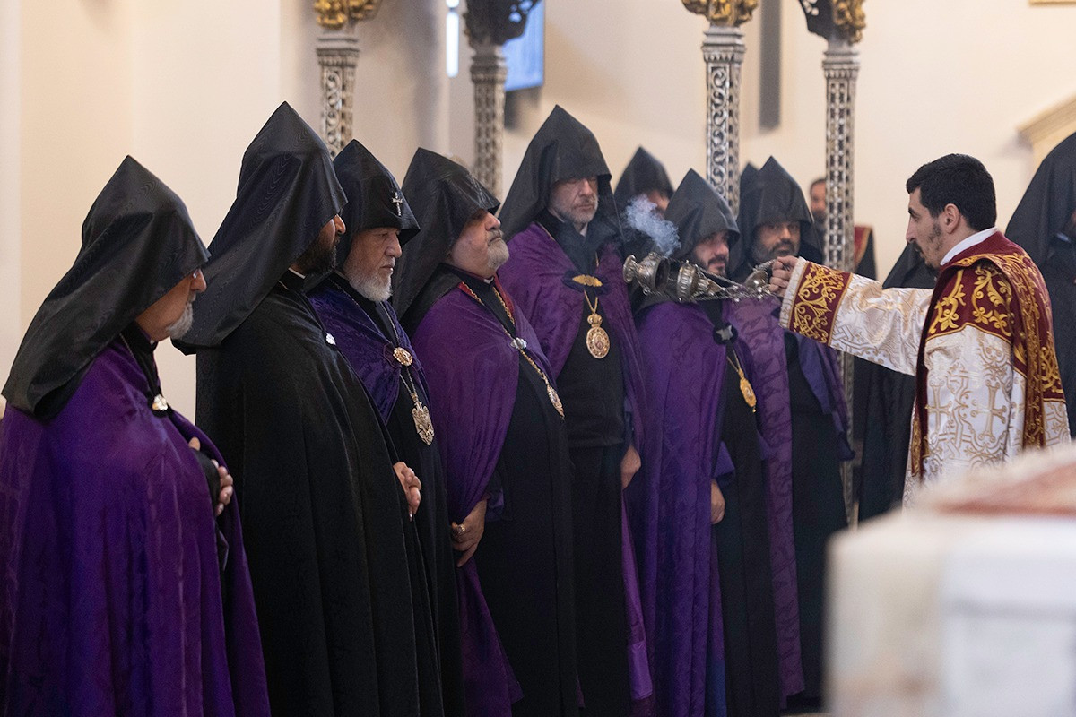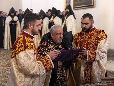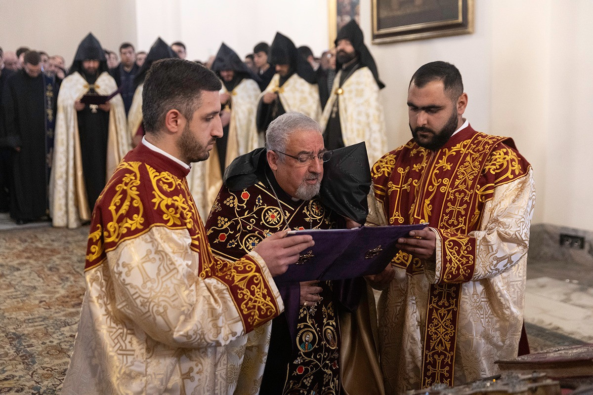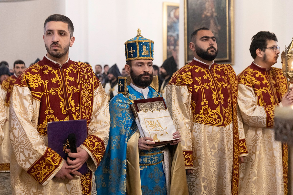 Սրբազան արարողությանը ներկա էին թեմակալ առաջնորդներ, Մայր Աթոռի միաբաններ և բազմաթիվ հավատավոր հայորդիներ: