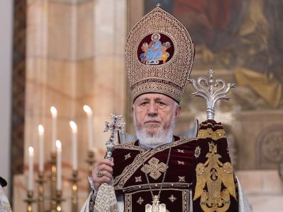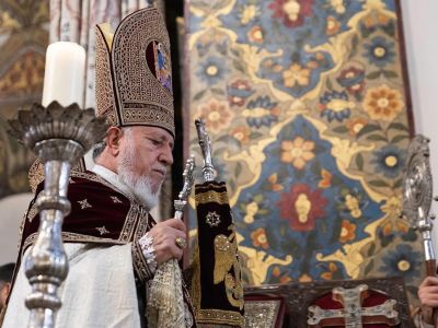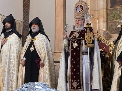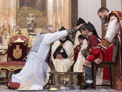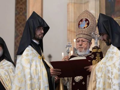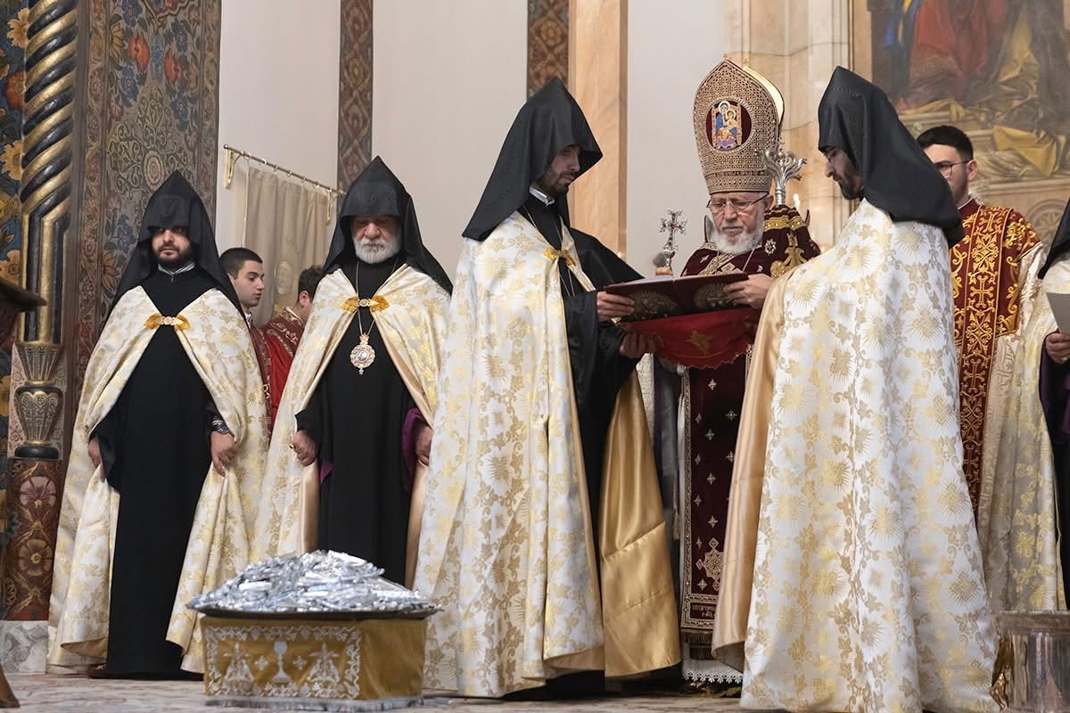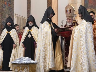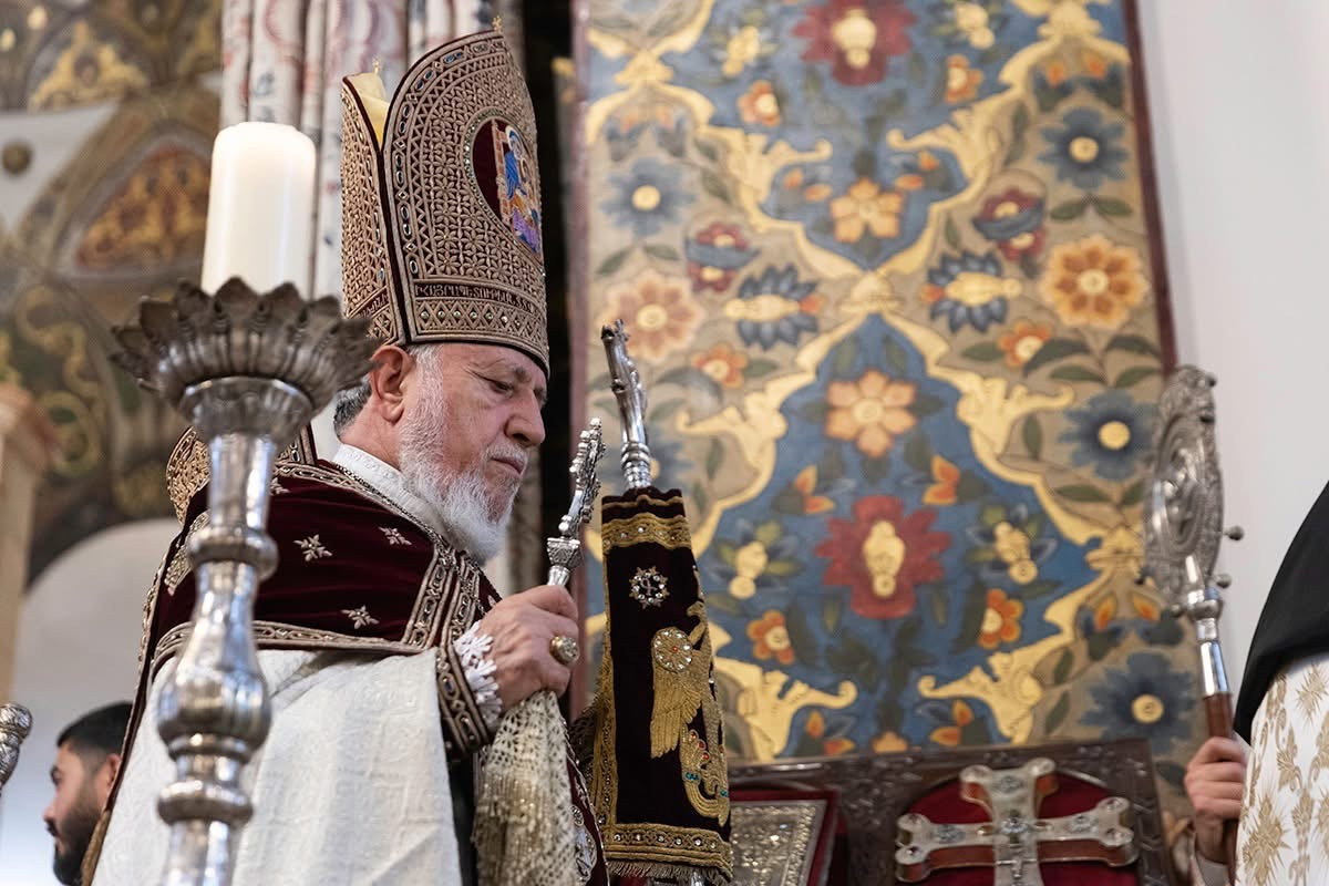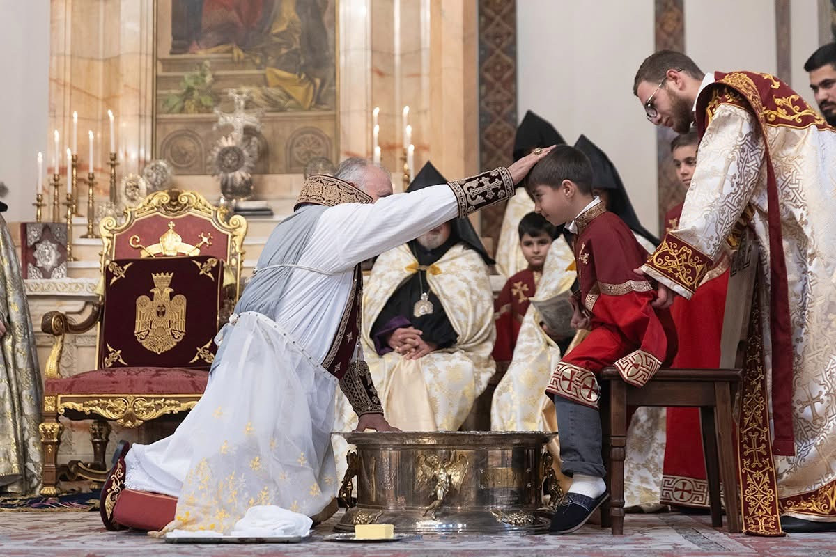Սրբազան արարողության ընթացքում՝ սուրբգրային ընթերցումներից հետո, Ամենայն Հայոց Կաթողիկոսն օրհնեց խորանի վրա դրված ջուրն ու յուղը։