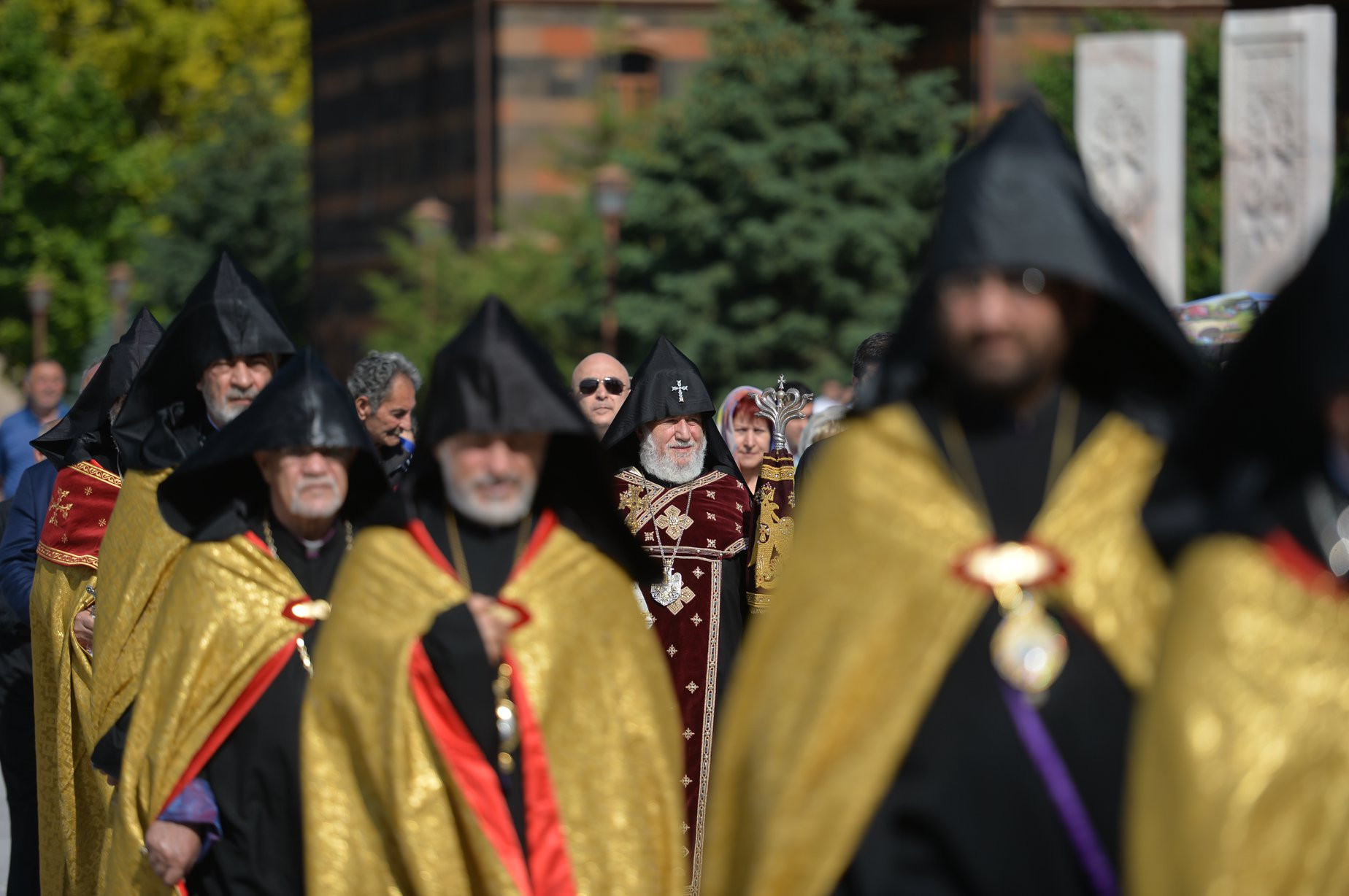 Дорогие, вдохновленные славными майскими событиями, единодушно испросили нашего Господа умножить в нашей жизни достигнутые посредством Иисуса Христа победы, силу и благодать. Вознесем нашу молитву из глубин сердца, преклонившись перед светлой памятью иерея Гевонда нашего времени – Католикоса Всех Армян Геворга Пятого, майский героев армянского народа – Арама Манукяна, архимандрита Гарегина Овсепяна, доблестных военных Товмаса Назарбекяна, Мовсеса Силикяна, Даниела и Погоса Бек-Пирумянов, Дро и других, многочисленных священнослужителей. Звучавший дни майских героических сражений звон колоколов пусть всегда находит отзвук в сердцах армян. Пусть звенят колокола, ярко храня заветную память армянских героев. Пусть звенят колокола во всем мире плетя гордость героических сражений в Сардарапате, Апаране и Каракилисе. Пусть звенят, вечно звенят колокола, укрепляя в сыновьях нашего народа по всему миру дух отваги и преданности, дабы наш народ с новой силой и усердием продолжал служить прогрессу нашей родины, безопасности и благоденствию нашей жизни, осуществлению наших национальный мечтаний.