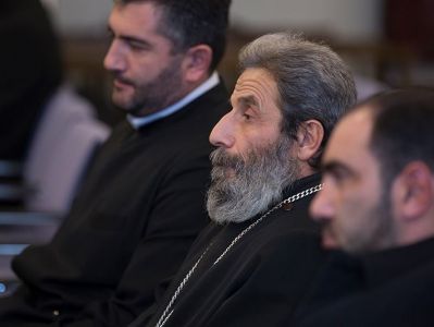 Ответственный курсов Его Высокопреподобие архиепископ Езник Петросян представил Католикосу Всех Армян духовных отцов и, подводя итоги года, отметил, что начиная с 11 февраля в курсах приняли участие 161 священнослужителя: 127 из них были из Армении и Арцаха, а 34 – из епархий диаспоры. Говоря о важности и полезности курсов по переподготовки священнослужителей, владыка коснулся важности встреч с Католикосом Всех Армян, которые дают возможность служителям Церкви обсуждать с Его Святейшеством различные проблемы и вызовы их пастырской жизни.