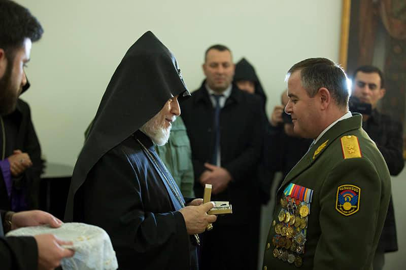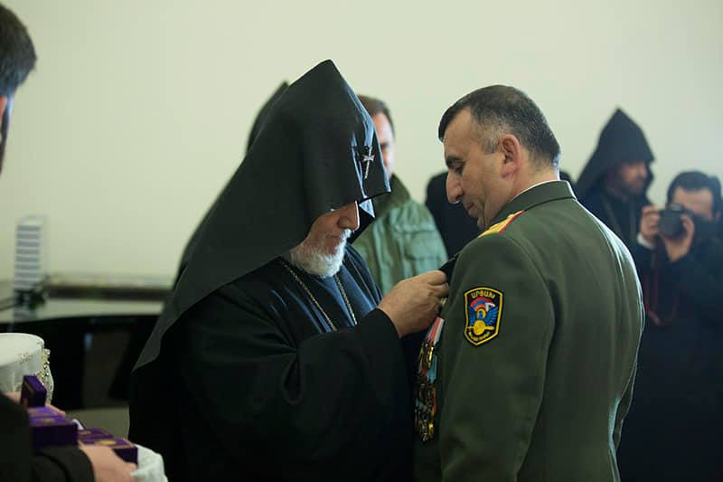 В честь праздника в зале торжеств духовной семинарии «Геворгян» прошел официальный прием, в ходе которого состоялась церемония награждения. За заслуги перед Родиной Католикос Всех Армян по просьбе духовного предводителя ВС РА Его Преосвященства епископа Вртанеса Абраамяна вручил высшую награду Армянской Церкви – орден «Святого Нерсеса Шнорали» командующему Армии обороны Арцаха генерал-майору Карену Абрамяну, начальнику управления разведки Генштаба ВС РА генерал-майору Аракелу Мартикяну, командующему армяно-российской объединенной группировкой войск генерал-майору Тиграну Парваняну, члену высшего офицерского совета Министерства обороны Республики Армения генерал-майору Владимиру Айрапетяну, начальнику военно-медицинского управления Вооруженных сил подполковнику Гаяне Ованнисян, заместителю начальника Военной полиции Министерства обороны РА полковнику Агаси Багратуняну, командиру первого армейского корпуса ВС РА полковнику Жирайру Погосяну и командиру пятого армейского корпуса ВС РА полковнику Арутуру Киракосяну. Католикос Всех Армян также вручил нагрудные знаки «Крест Ашота Ерката» министру обороны Армении Давиду Тонояну, начальнику Генштаба Вооруженных сил РА генерал-лейтенанту Артаку Давтяну, заместителям министра обороны, начальникам отделов и высокопоставленным офицерам.