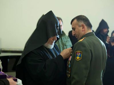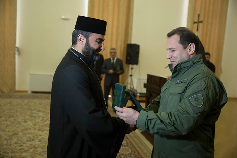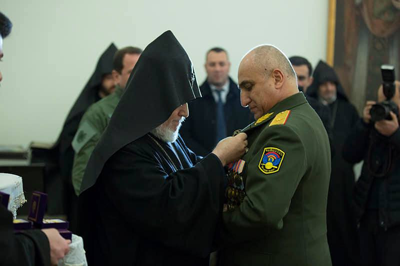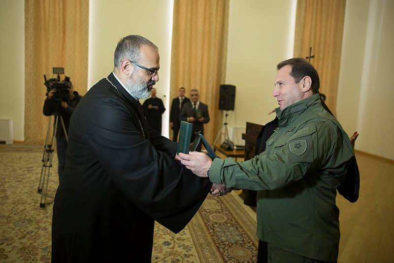 На приеме указом министра обороны РА за значимый вклад в духовно-патриотическое воспитание военнослужащих был награжден ряд священнослужителей. Медалями «Андраник Озанян» были награждены глава Румынской епархии ААЦ Его Преосвященство епископ Татев Акопян, управляющий Армянской филантропической семинарией Калькутты Его Высокопреподобие иеромонах Мовсес Саргсян. Медалей «Гарегин Нжде» были удостоены духовный пастырь Берда Преподобный иерей Арам Мирзоян, настоятель церквей Святой Богородицы (Сурб Катогике) и Святой Анны Преподобный иерей Зенон Барсегян, капелланы Преподобные иереи Амазасп Агеян и Еремиа Саргсян. Медалей «Драстамат Канаян» удостоились капелланы диаконы Манвел Саргсян и Акоп Малхасян.