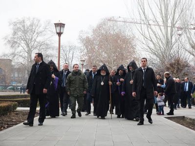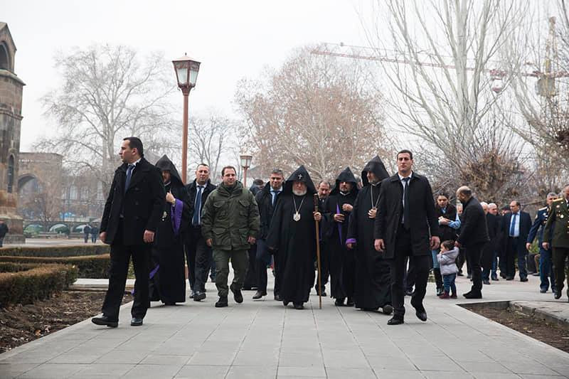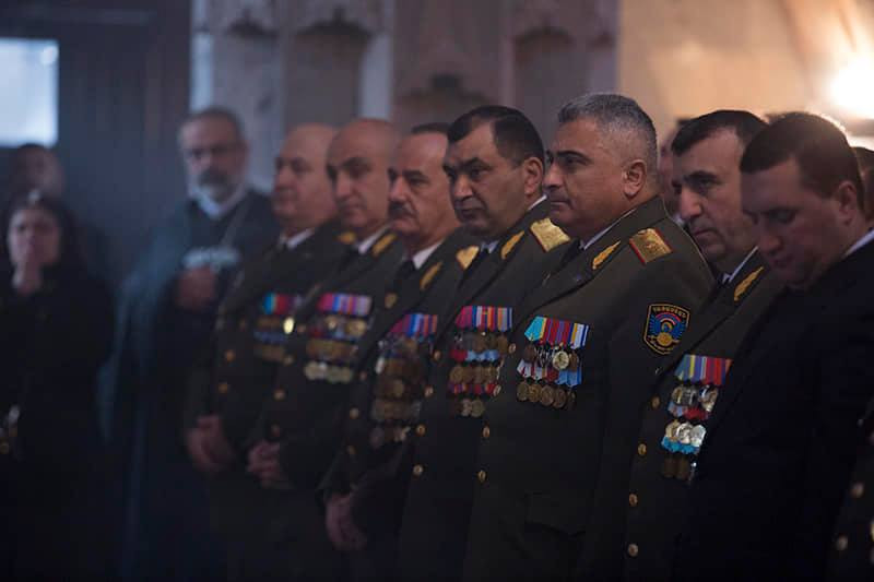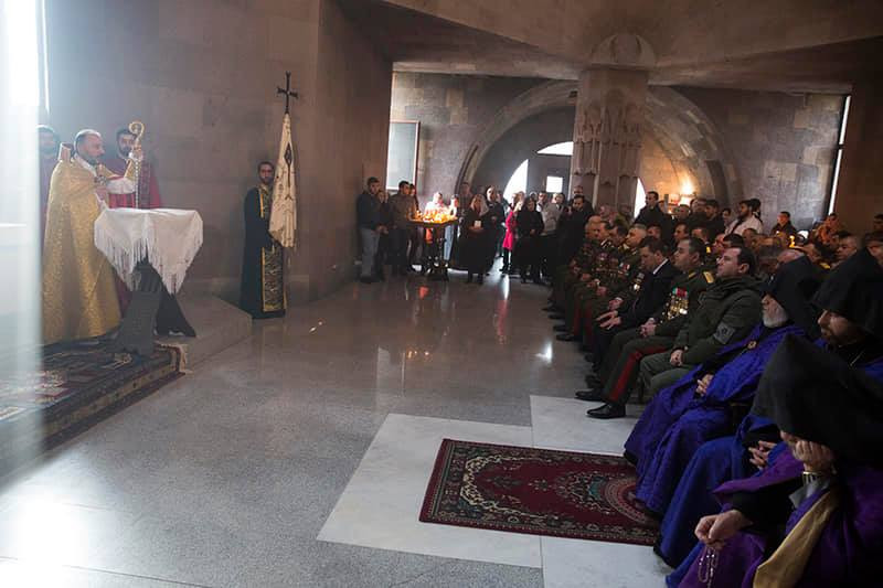 По окончании Святой Литургии под предводительством Католикоса Всех Армян был совершен Республиканский молебен, в ходе которого духовенство и миряне вознесли молитву Всевышнему Господу за мир и непоколебимость Армении, победный путь Армянской армии. Затем Его Святейшество Гарегин Второй благословил нагрудные знаки «Крест Ашота Ерката», которые были вручены офицерскому составу и солдатам.