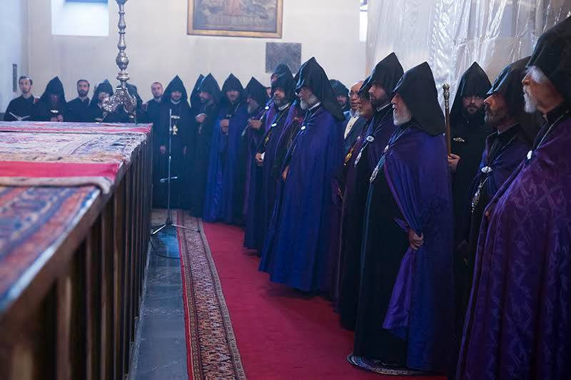 На молитвенном делании присутствовали члены братии Святого Эчмиадзина, главы епархий и архиереи, благотворители Святого Эчмиадзина и многочисленные паломники.