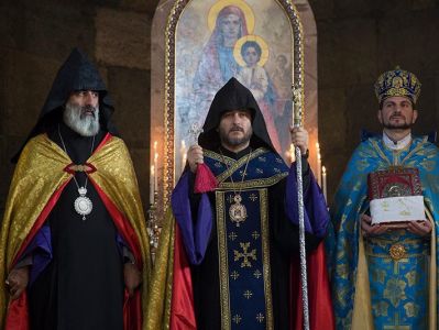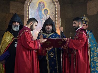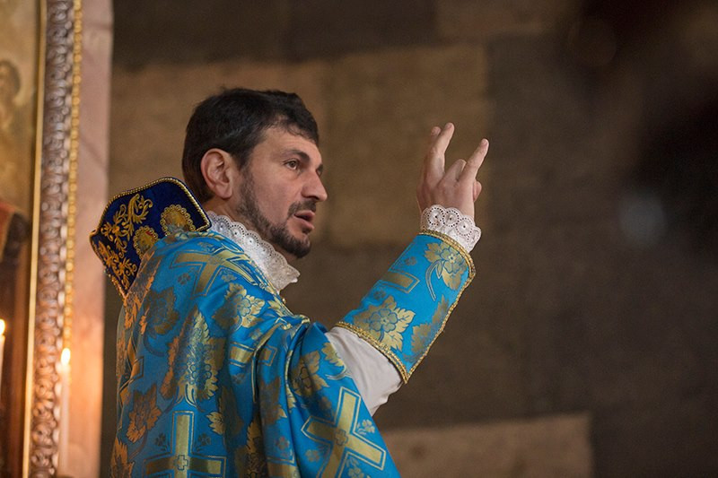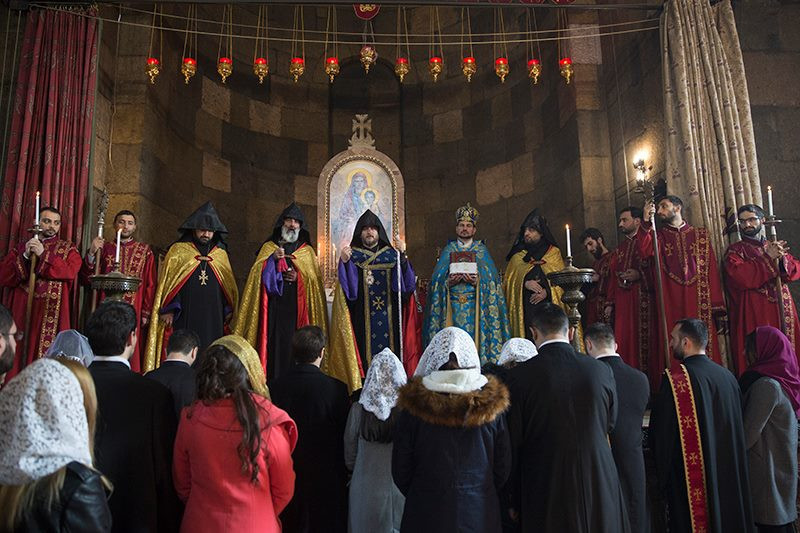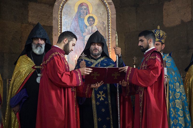 По окончании Святой Литургии в предводительстве главы административно-хозяйственного отдела Первопрестольного Святого Эчмиадзина Его Высокопреосвященства епископа Мушега Бабаяна был совершен чин благословения молодоженов. Владыка поздравил с праздником и пожелал молодым счастья.