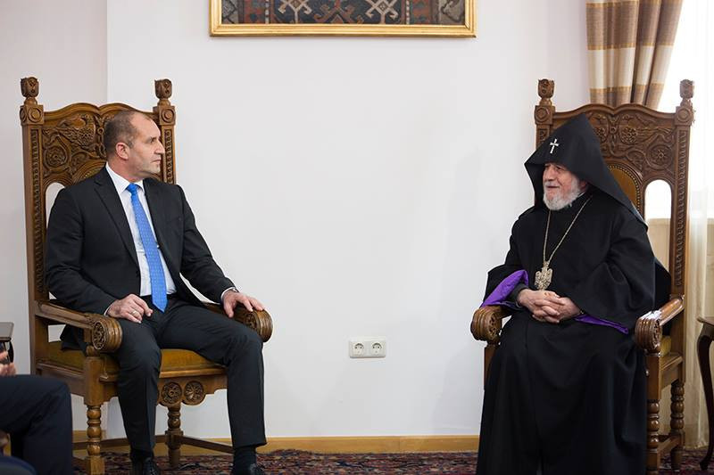 Его Святейшество, поприветствовав визит президента Болгарии в Армению и Первопрестольный Святой Эчмиадзин, с радостью отметил, что это станет новым стимулом для расширения двустороннего сотрудничества между двумя странами в различных областях. Католикос Всех Армян отметил, что тесные армяно-болгарские связи являются прочной основой для дальнейшего развития сотрудничества между государствами, в связи с этим подчеркнув важную роль армянской общины Болгарии.