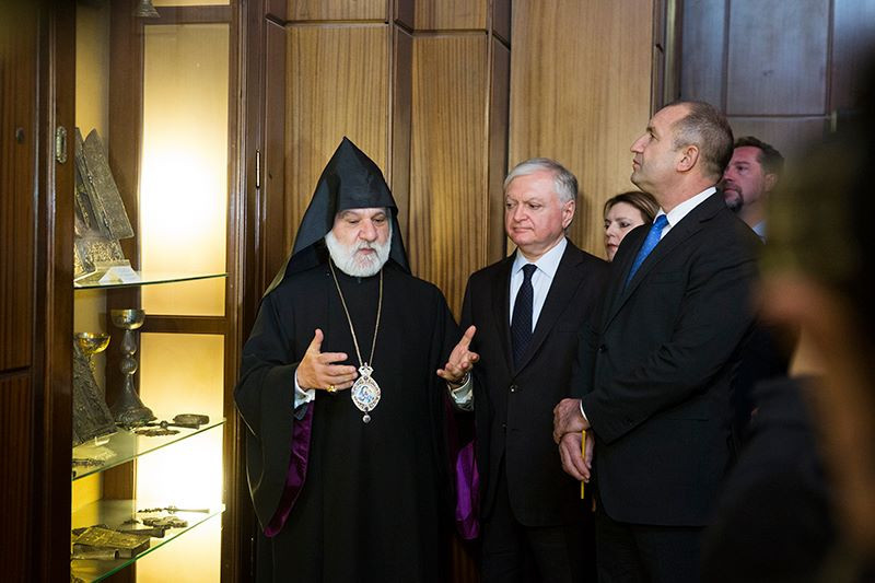Делегация во главе с президентом Болгарии побывал также в кафедральном соборе, ознакомился с выставленными в музее святынями и ценностями Армянской Церкви.