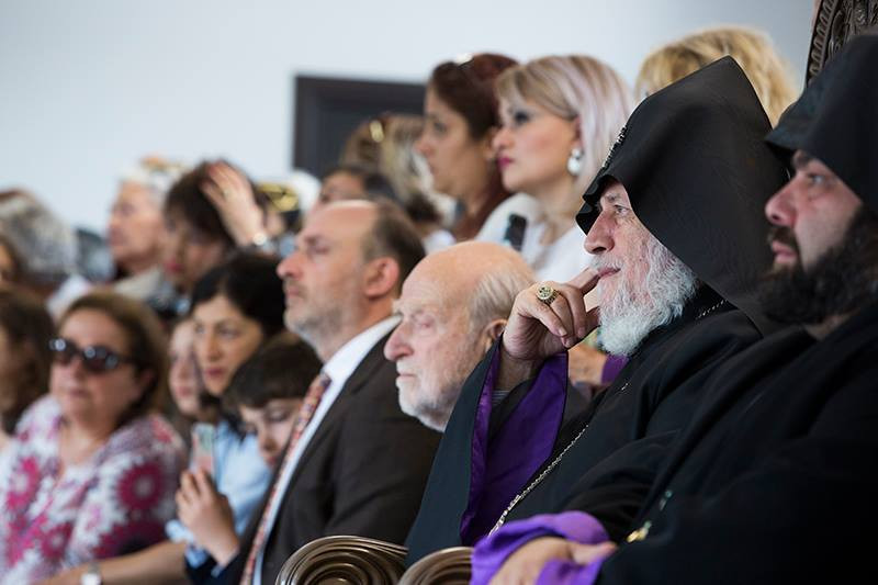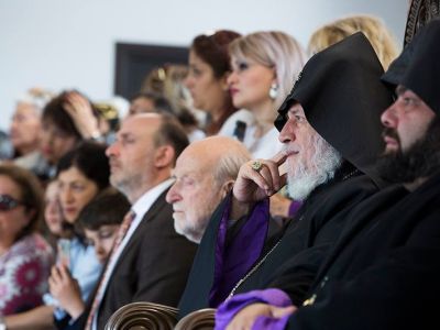 С речью выступила также благотворитель Надия Кабабджян, коснувшись построенного в память о сыне Кристофе Кабабджяне духовно-просветительского центра, поблагодарив Католикоса Всех Армян, который откликнулся на их просьбу и поддержал идею.