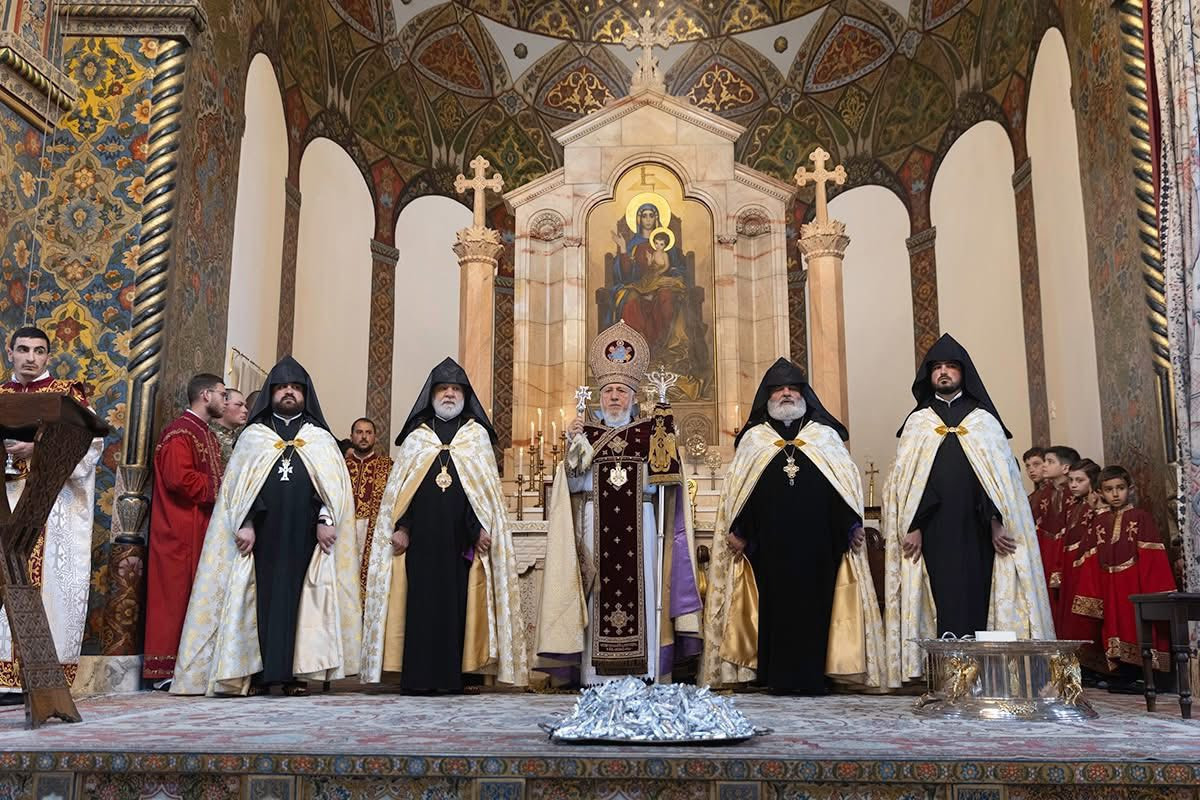 По завершении церемонии Католикос Всех Армян прочел Оберегающую молитву, после чего освящённое масло было роздано верующим.