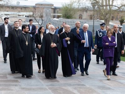 Приветствуя президента Штайнмайера и его досточтимую супругу, госпожу Эльке Бюденбендер, в Кафедральном соборе Святого Эчмиадзина, Католикос Всех Армян Гарегин II коснулся роли Армянской Апостольской Святой Церкви и Первопрестольного Эчмиадзина в формировании национальной и христианской идентичности армянского народа, и их важной миссии по сохранению армянского духовного и культурного наследия.