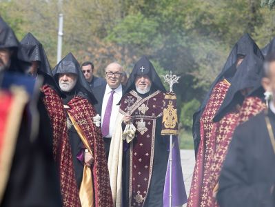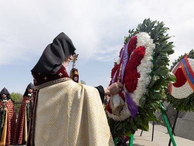 После возложения венка у памятника, под председательством Его Святейшества был совершен чин заступнической молитвы в память святых мучеников Геноцида армян.