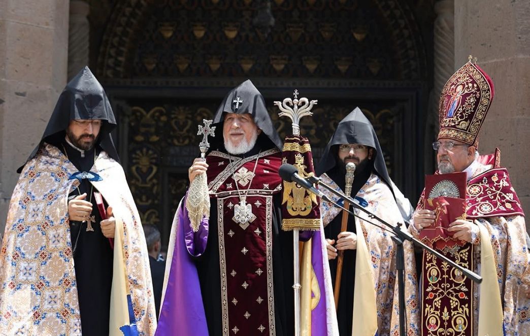 Единой молитвой воззовём к заступничеству Отца нашей веры Святого Григория Просветителя и Святого царя Трдата, да утвердиться мир Господень в мире, да пребудут в безопасности и спокойствии наша Родина и наш рассеянный по миру народ, всегда ведомый Богодарованной верой и надеждой, исходящей от Святого Эчмиадзина.