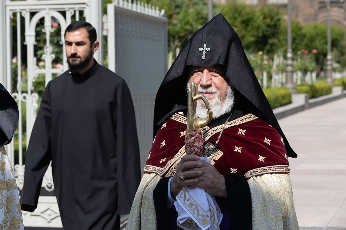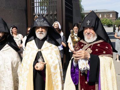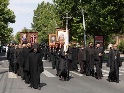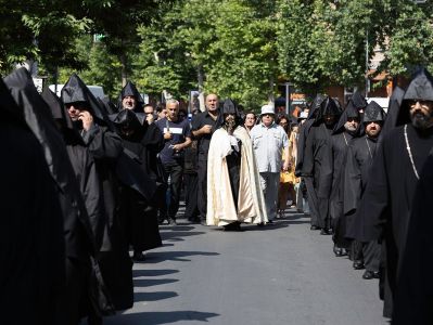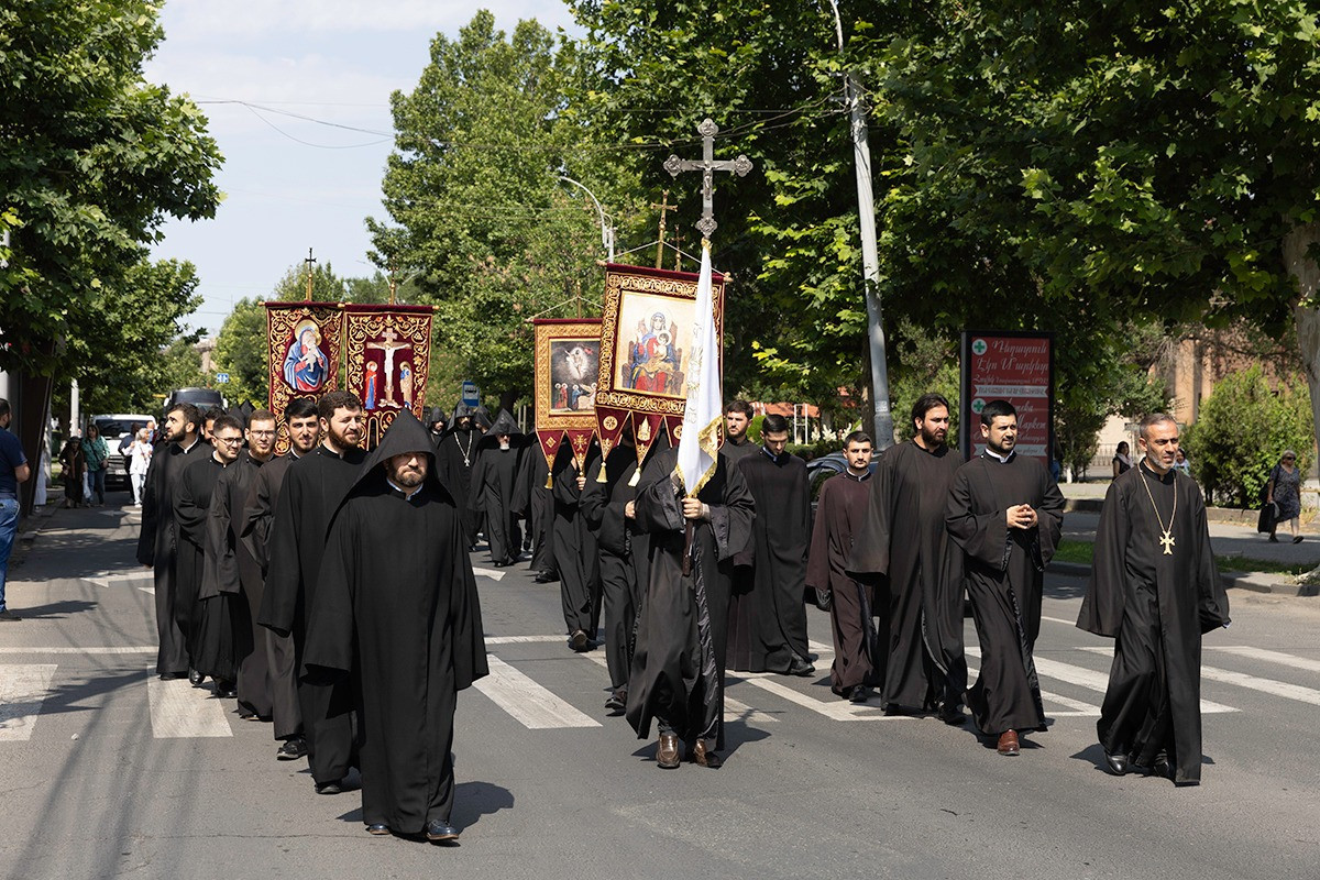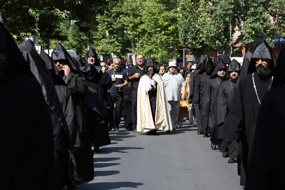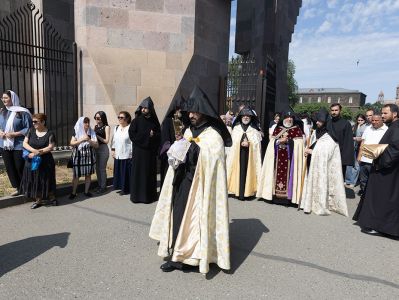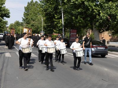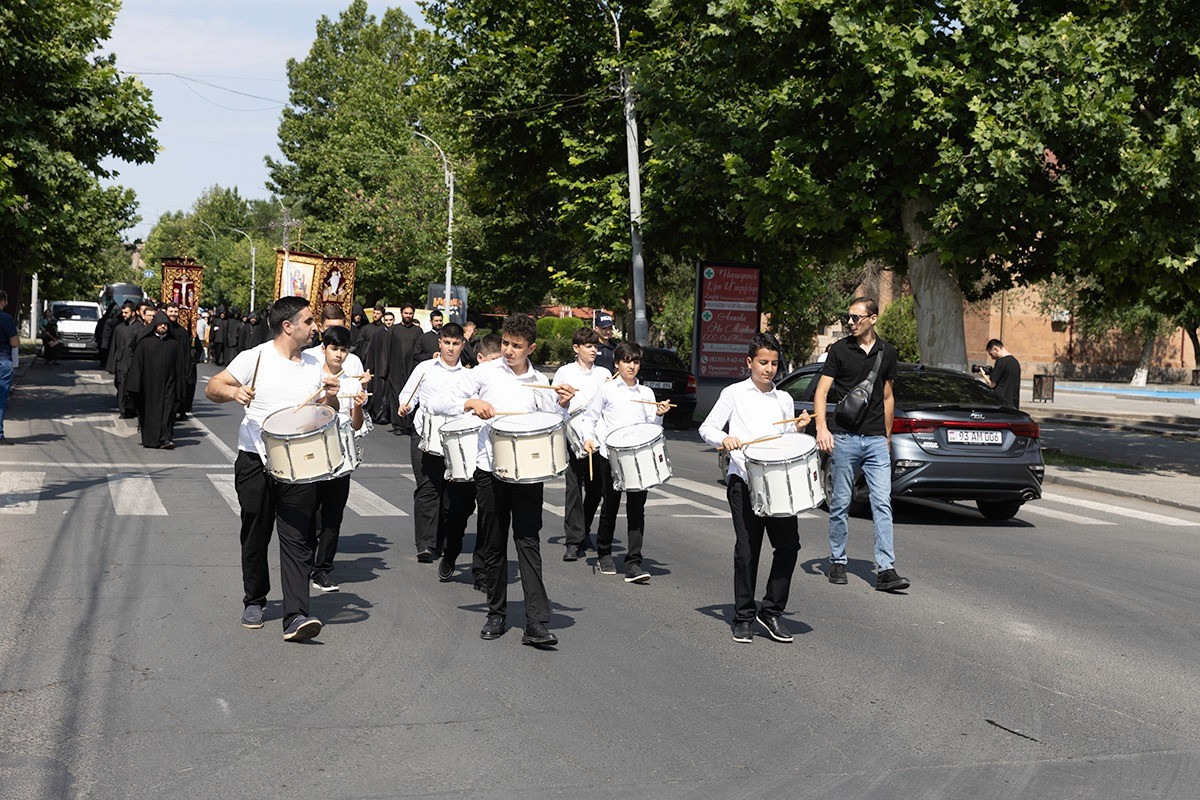 Утром духовенство Первопрестольного Святого Эчмиадзина, в сопровождении верующих и под барабанный бой воспитанников молодежного центра «Айордеац», торжественной процессией направилось к монастырю святой Рипсиме, неся ее святые мощи.